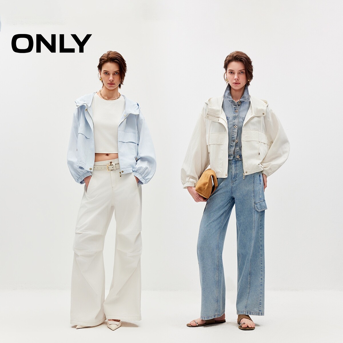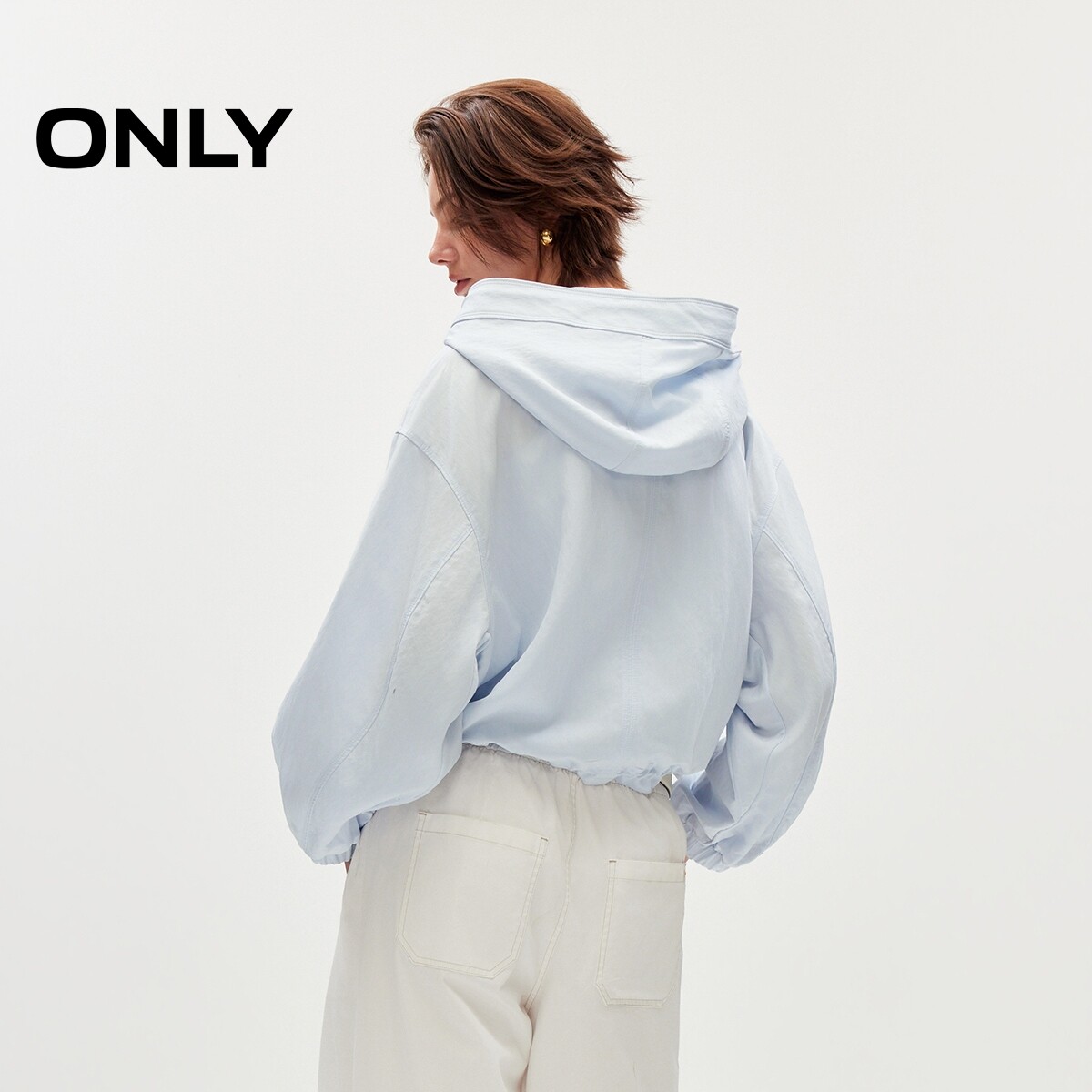 立体贴袋纯色挺阔落肩连帽风衣女 含莱赛尔短款 ONLY2026春季 新款