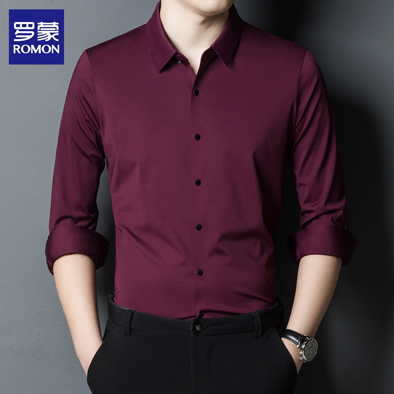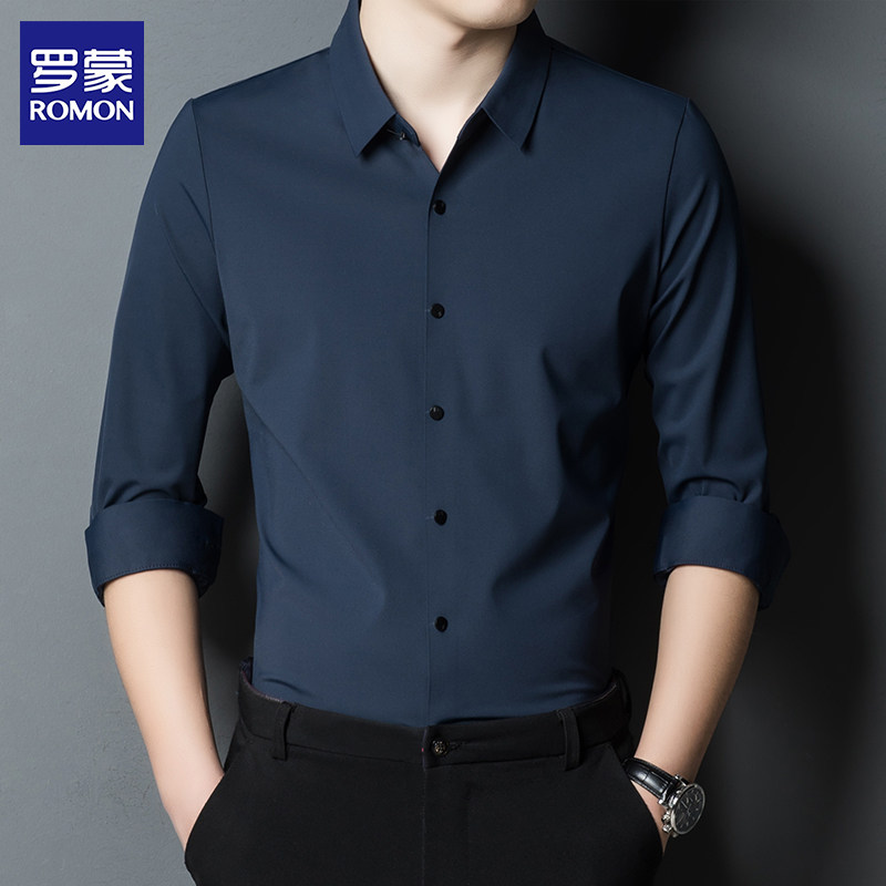 垂感商务休闲免烫中年衬衣男士 罗蒙无痕弹力衬衫 新款 秋冬季 男长袖