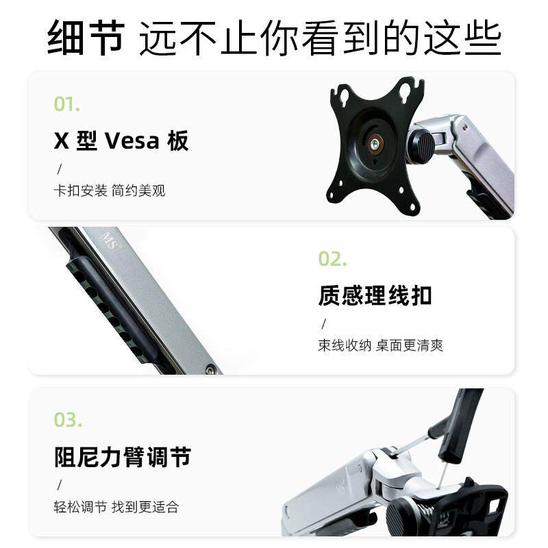 MS壁挂式 显示器支架X61机械臂电脑萤幕悬臂挂墙适配卓威显示器