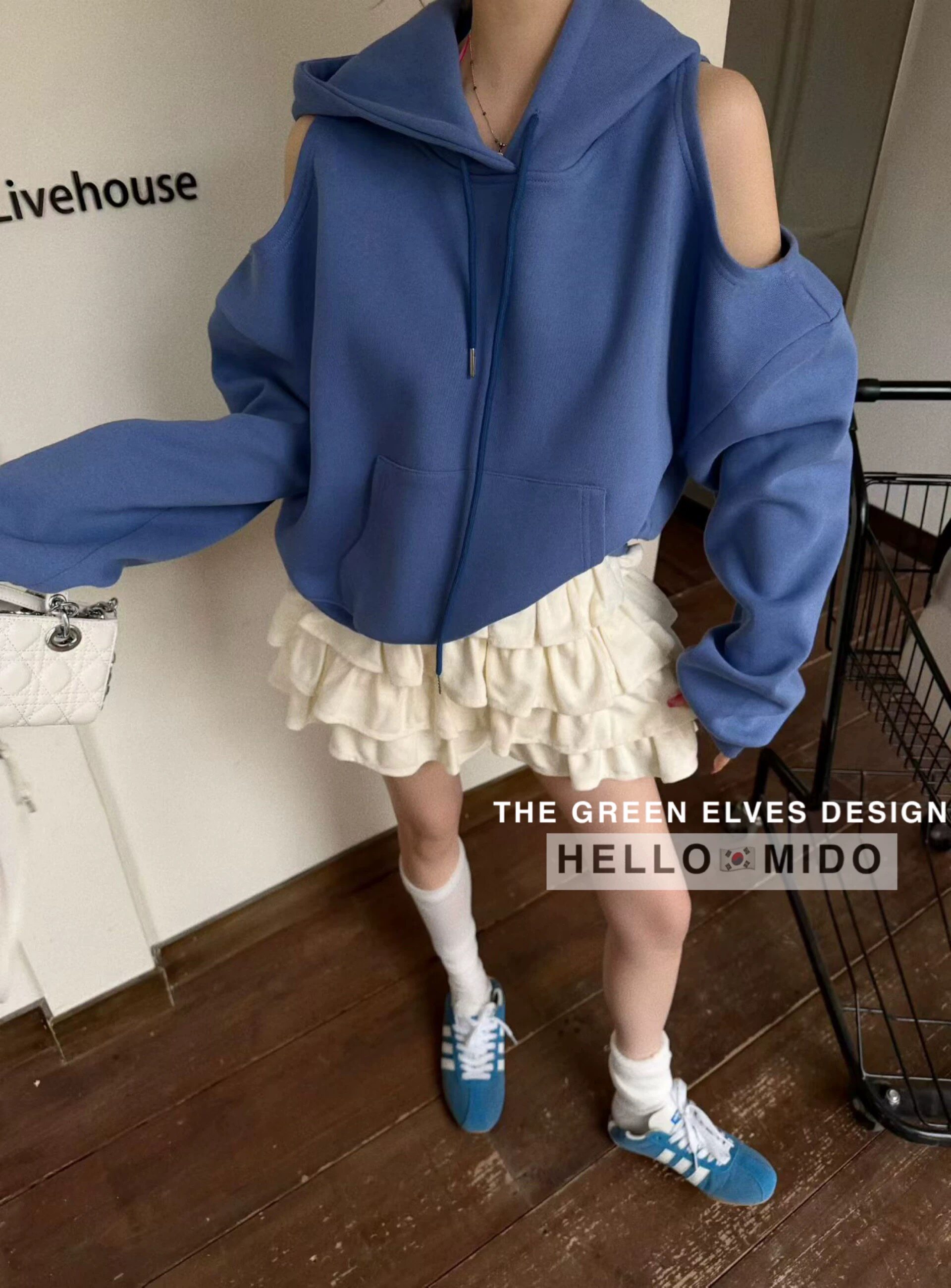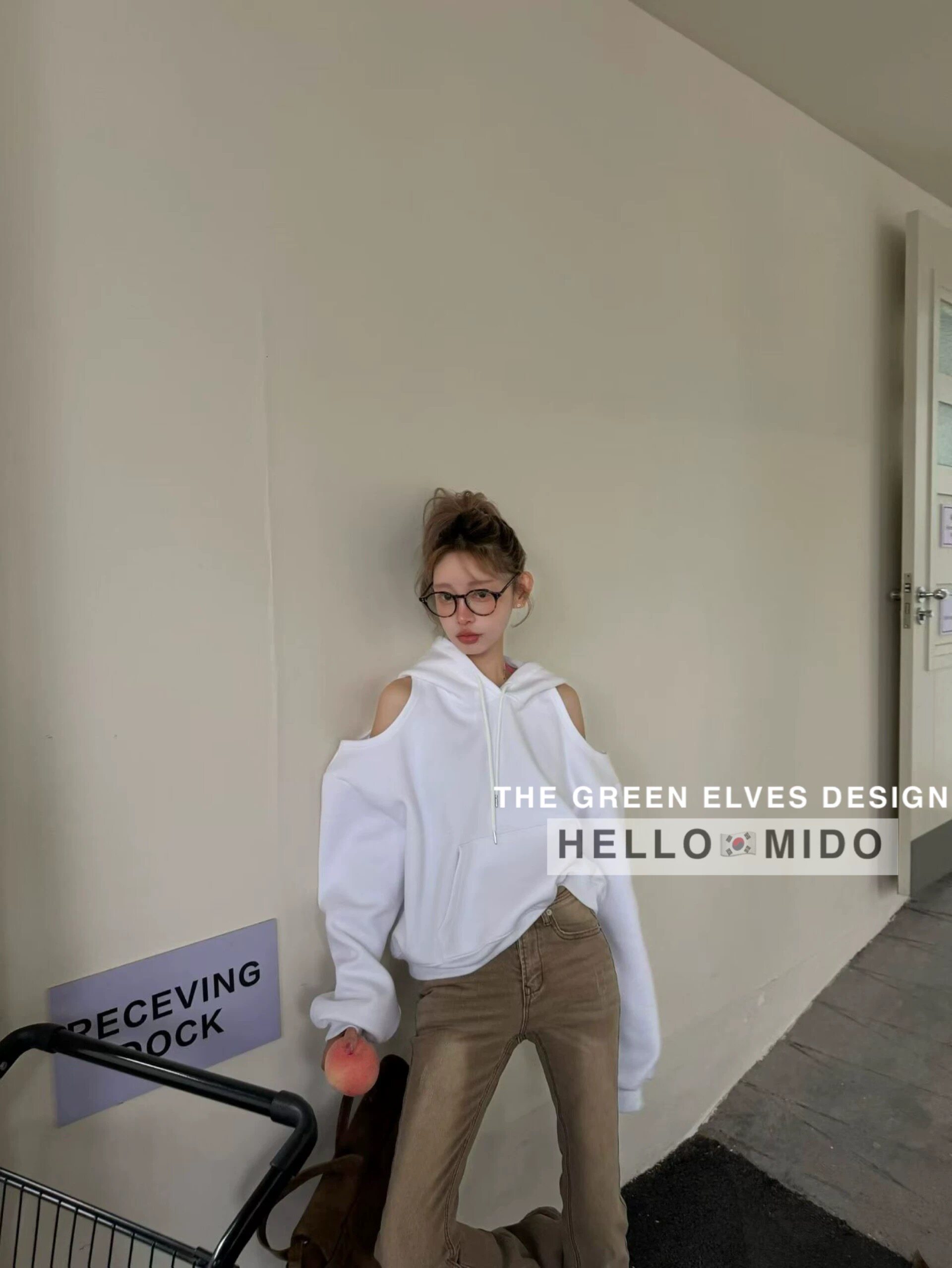 外套上衣 宽松休闲百搭连帽漏肩卫衣女短款 2026春新款 韩版