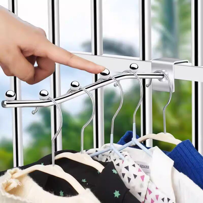 不锈钢阳台护栏多功能挂钩晾衣架神器防盗窗挂架 下单立减50