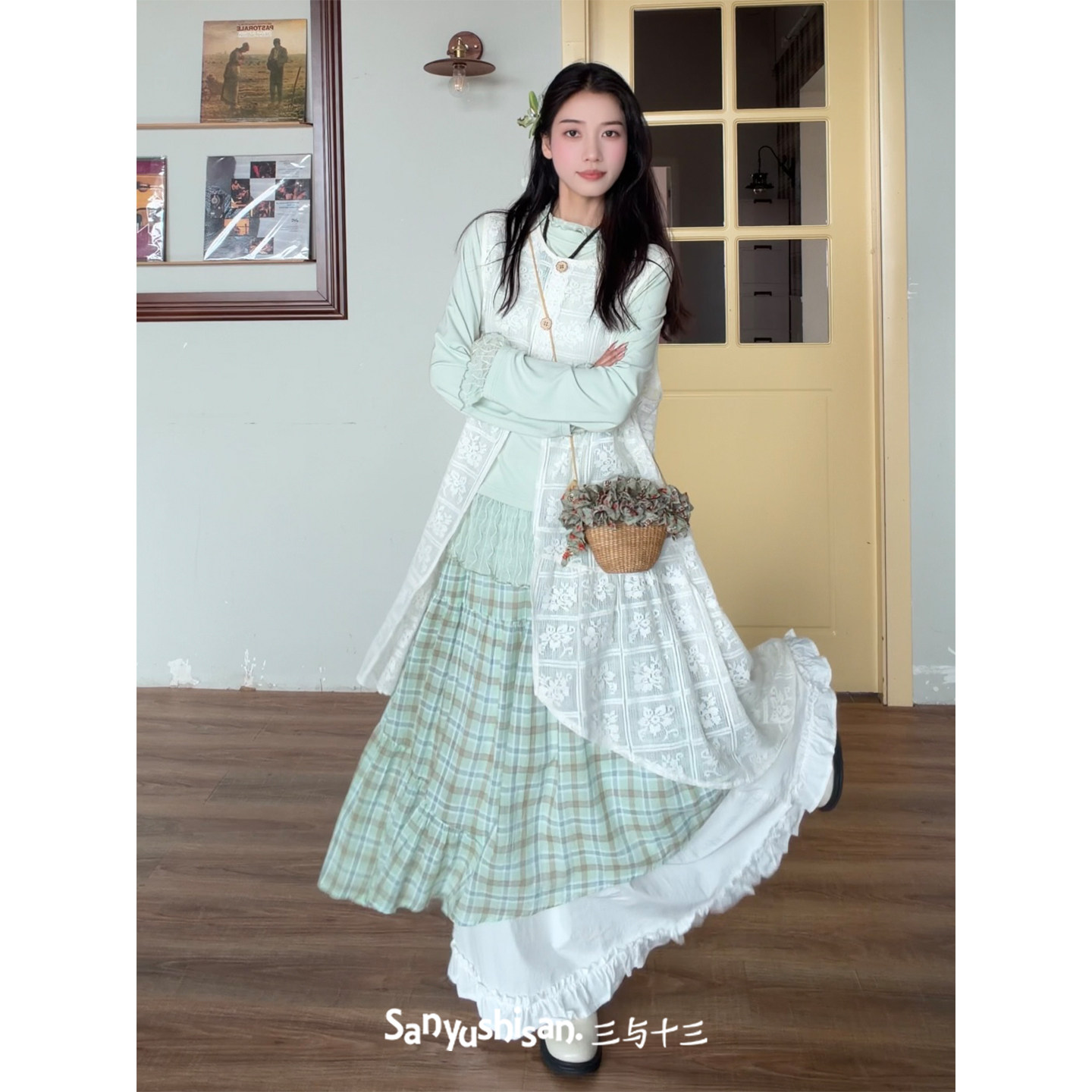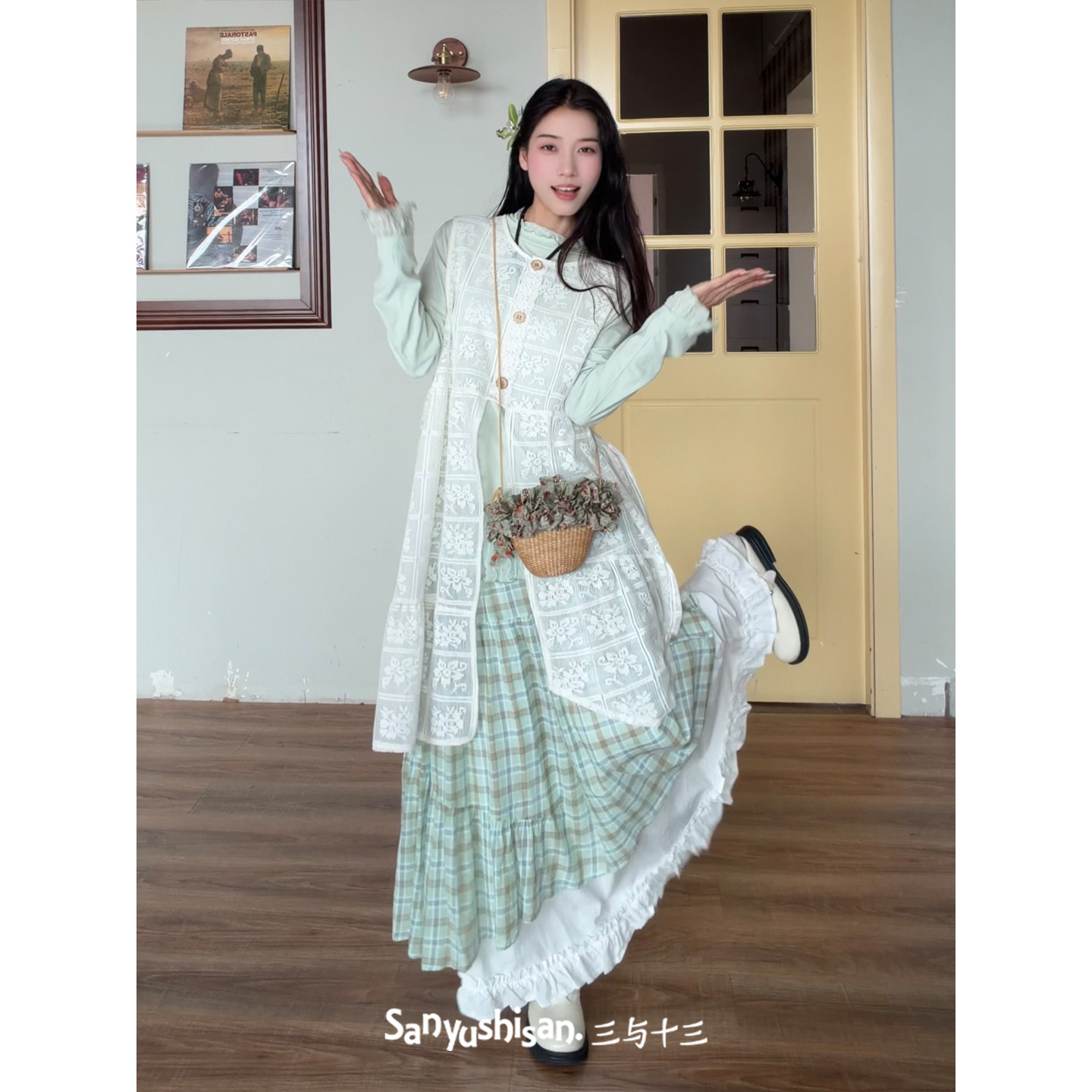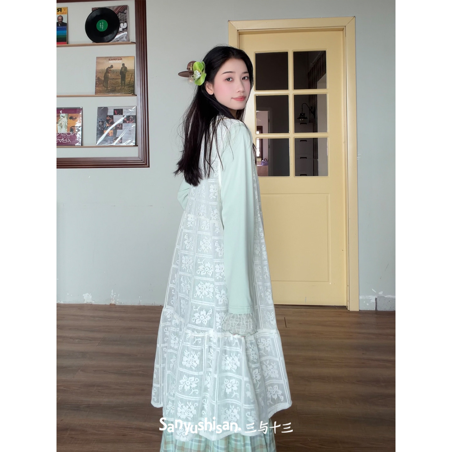 长款 三与十三 蕾丝镂空微透上衣女无袖 春季 马甲女叠穿 雨后初晴