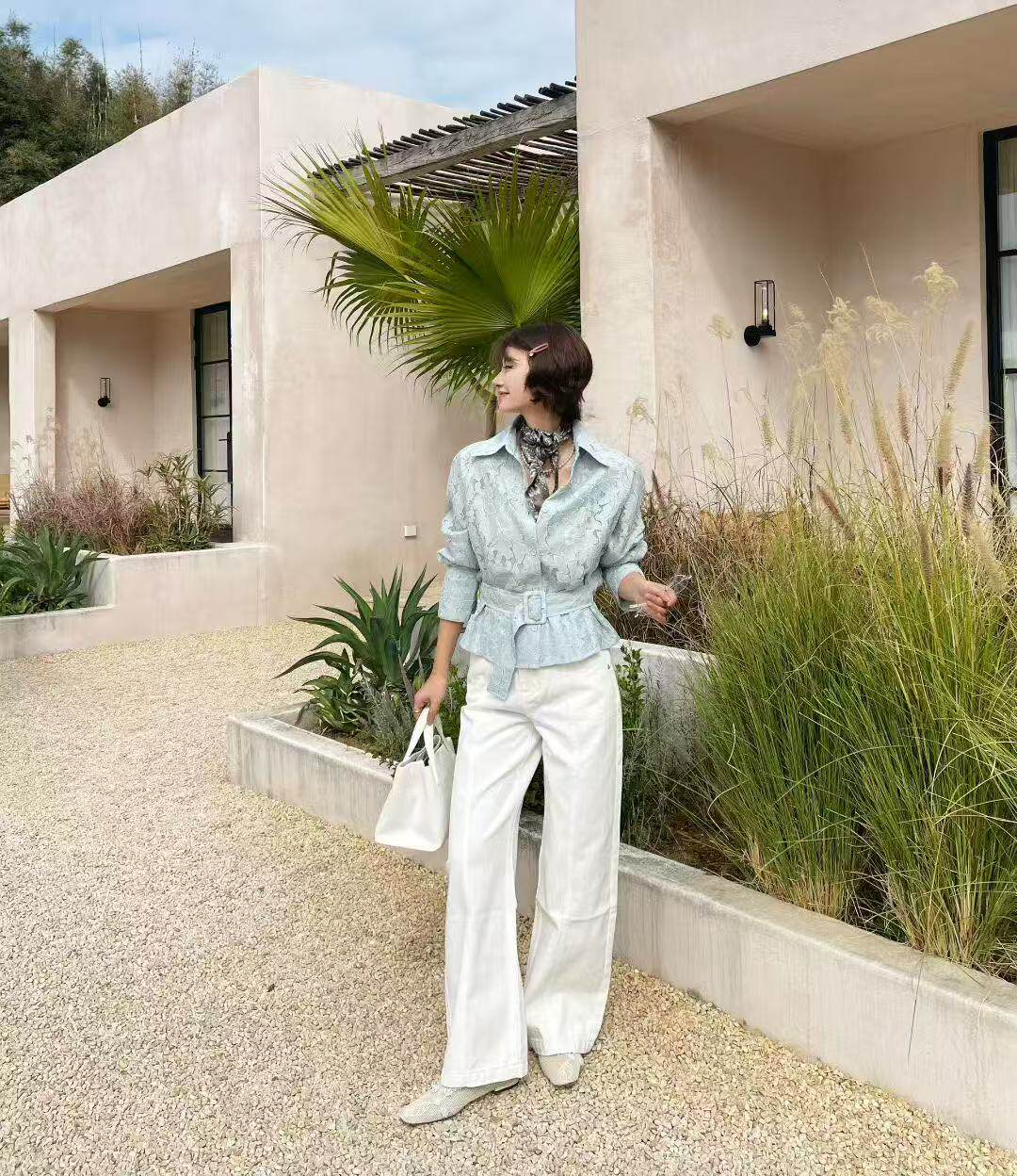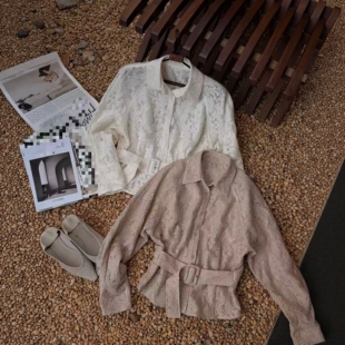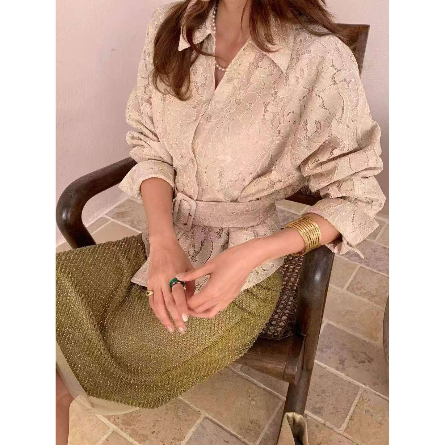 衬衫 欧洲站2026春季 .com设计感蕾丝拼接长袖 气质收腰上衣女 新款