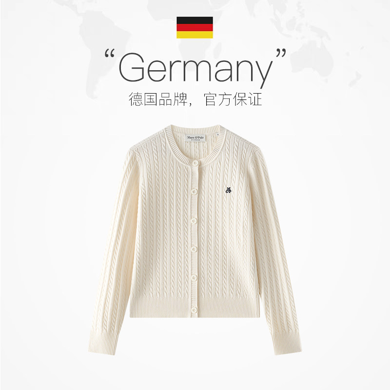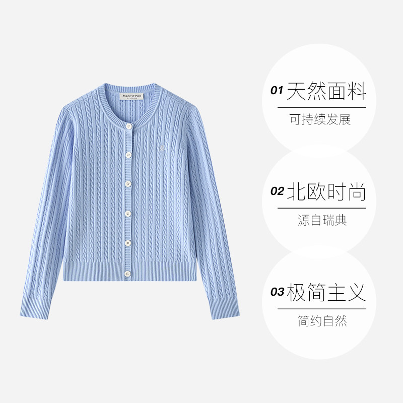 自营 棉羊毛混纺圆领绞花边毛织开衫 Marc Polo2025秋新款 女