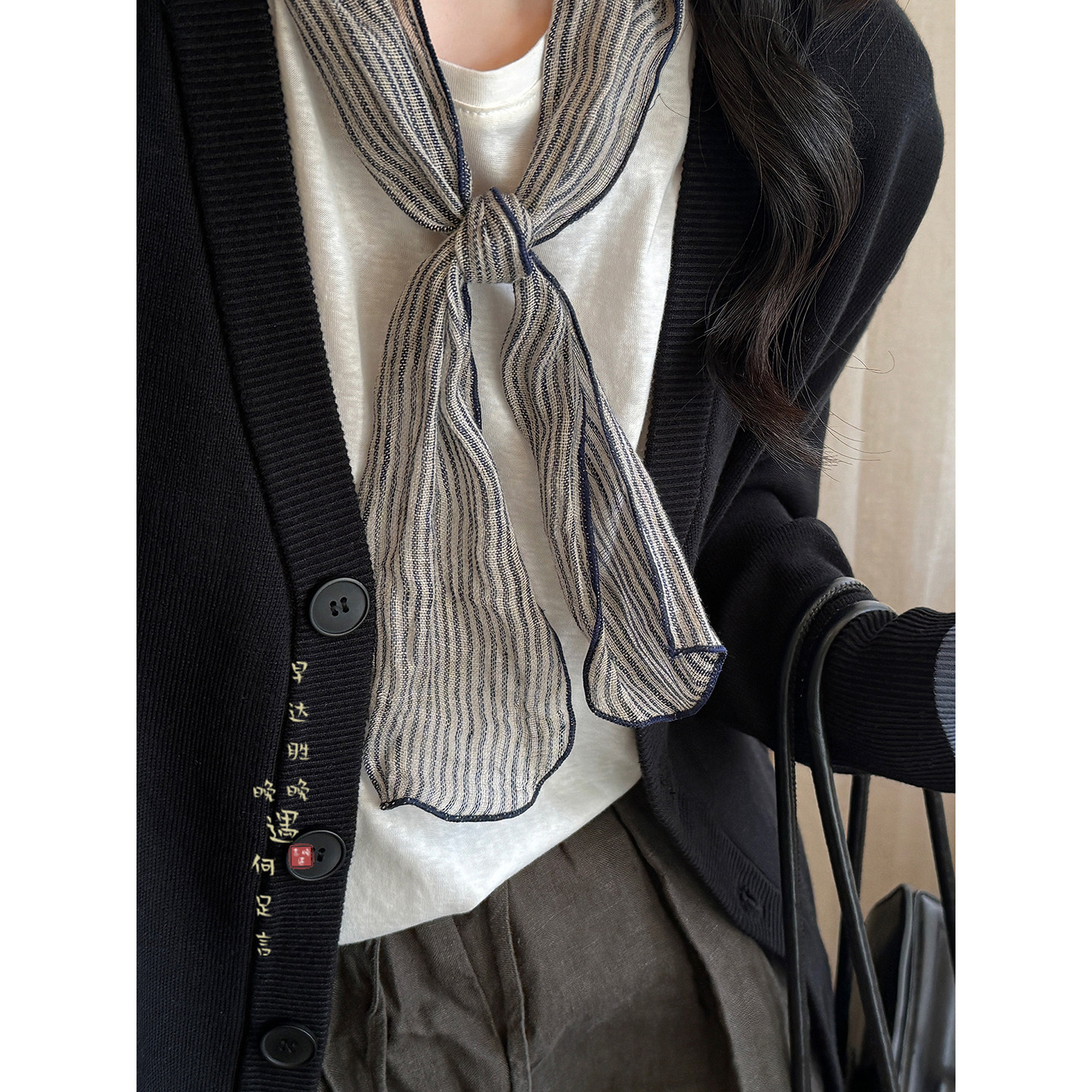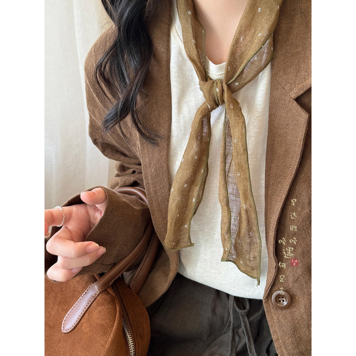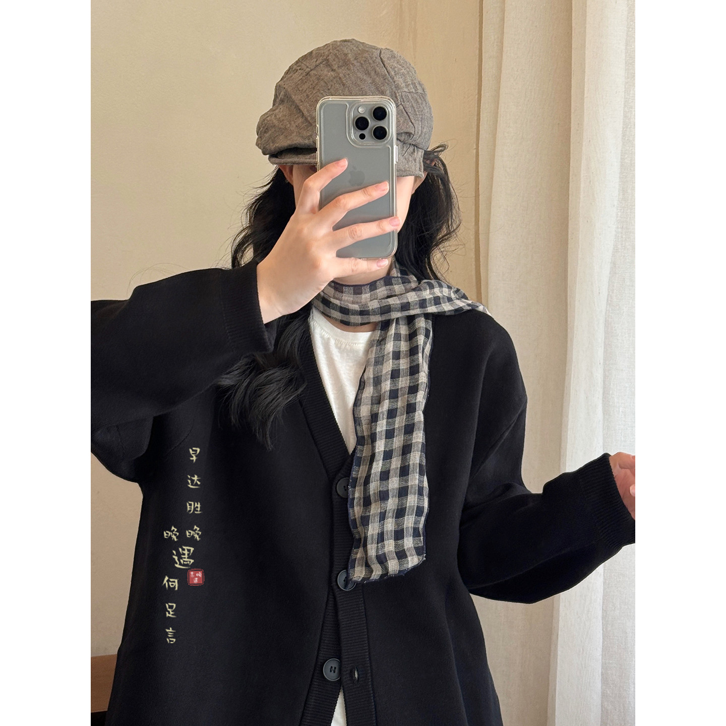 100%棉麻格子长条丝巾女2025新款 饰搭配系脖护颈领巾 高级感围巾装