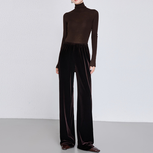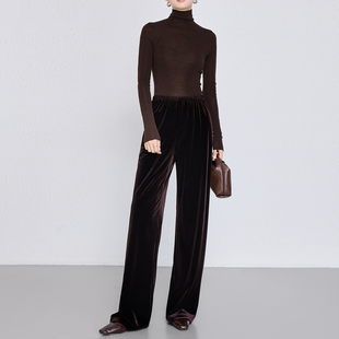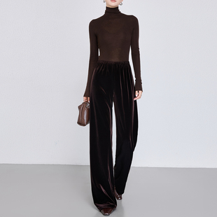 子bf宽松空气直筒裤 细腻波光丝绒阔腿裤 女松紧腰垂感慵懒松弛感裤