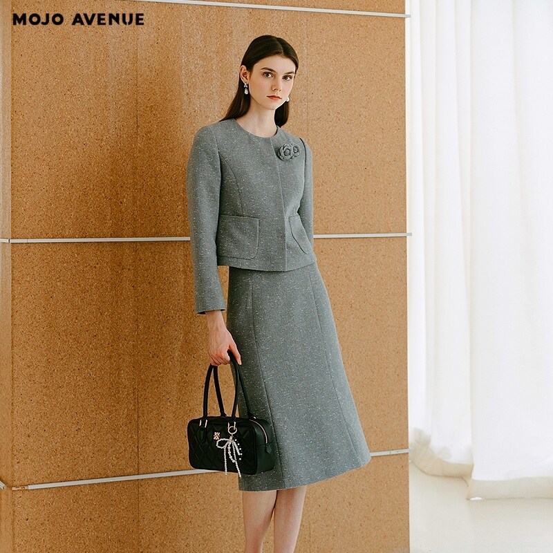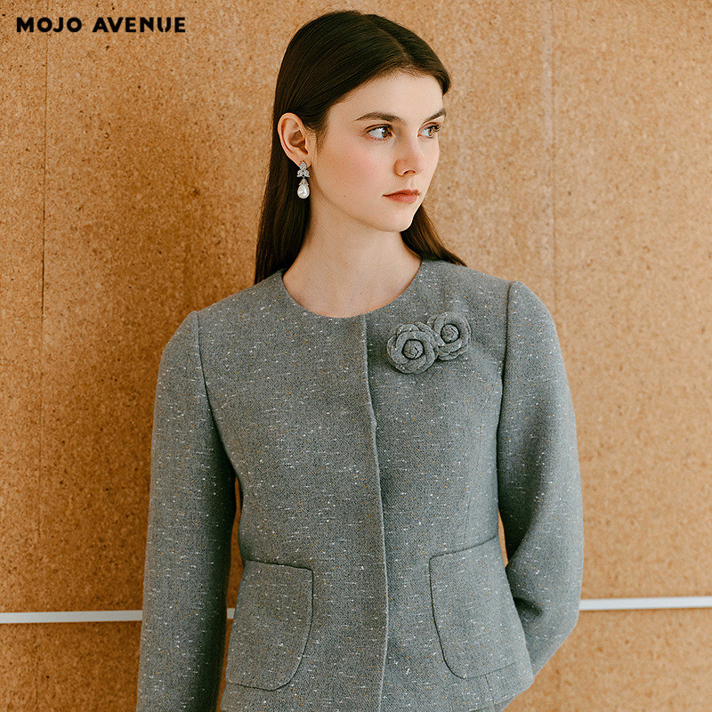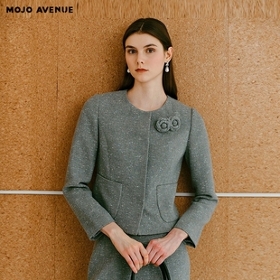 法式 AVENUE莫佐2025冬新款 气质山茶花香风短外套女士高 MOJO 朗姿