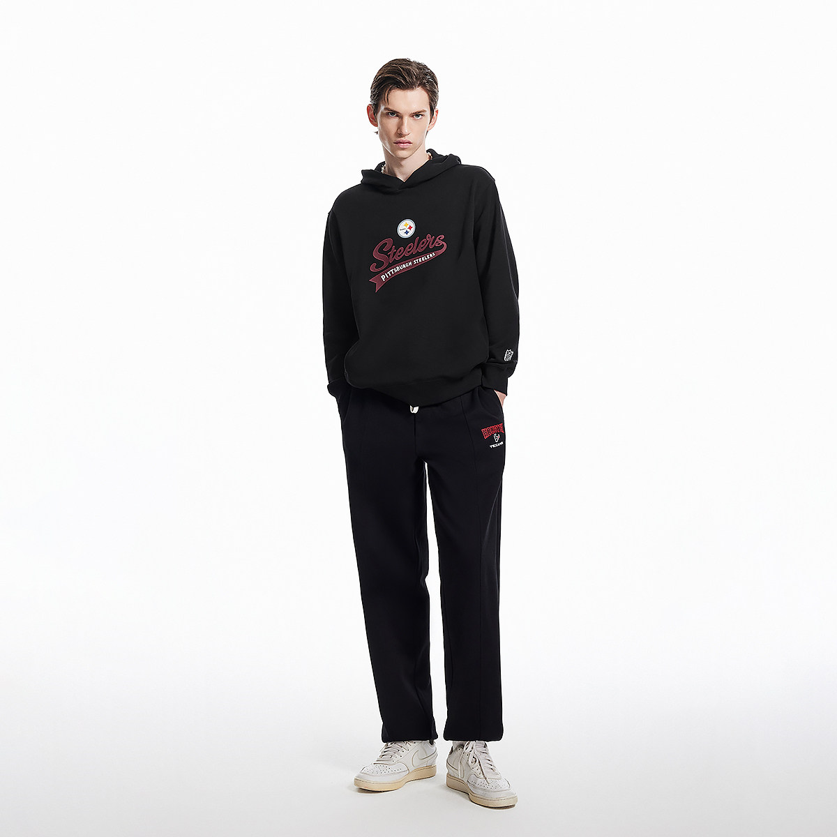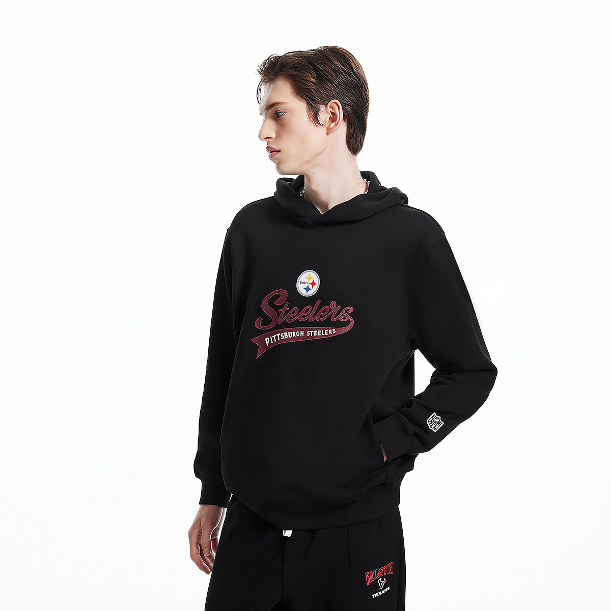 冬季 上衣 重磅加绒刺绣拼接圆领燕尾卫衣男宽松百搭休闲情侣打底衫