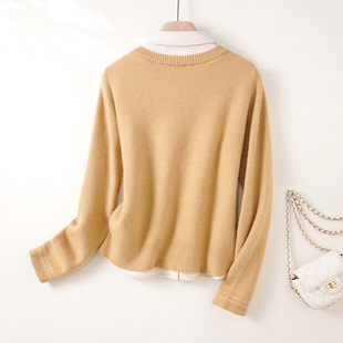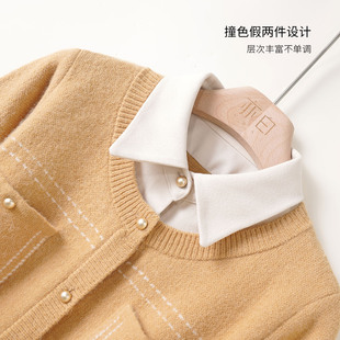RTIMFD复古假两件v领翻领毛衣 上衣慵懒风外套 cleanfit高级针织衫