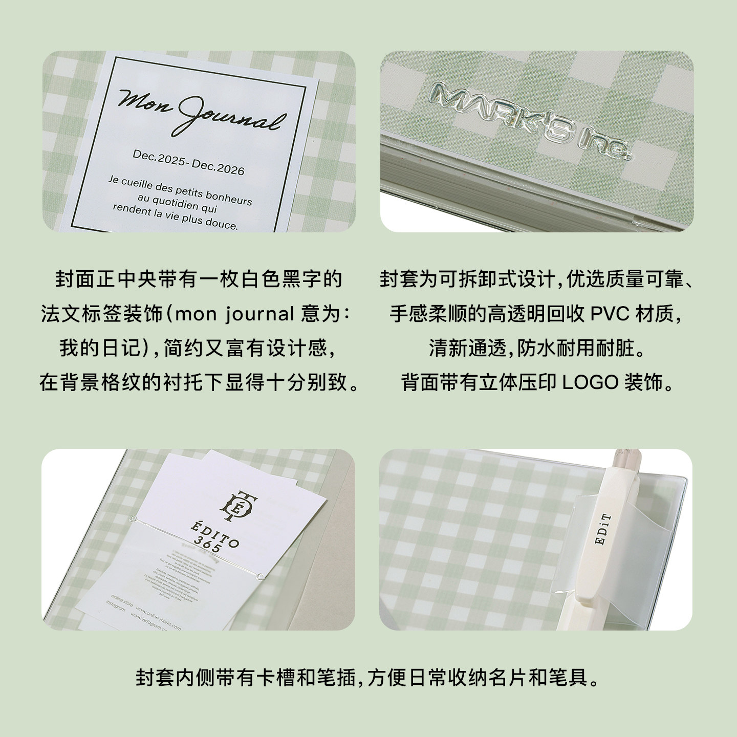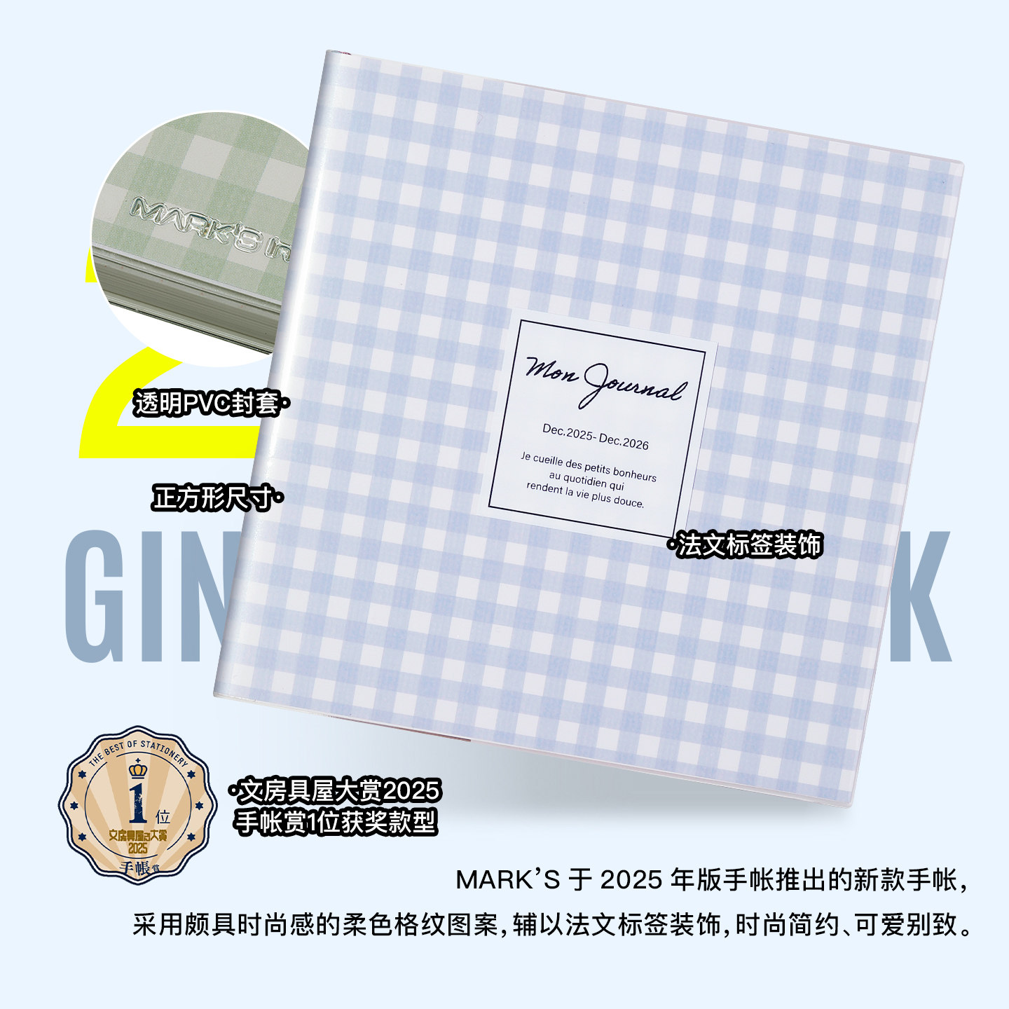 S文艺彩色格纹方形矩阵格周计划手帐日程管理笔记本记事本自研手帐纸PVC封皮学生白领 MARK 2026年