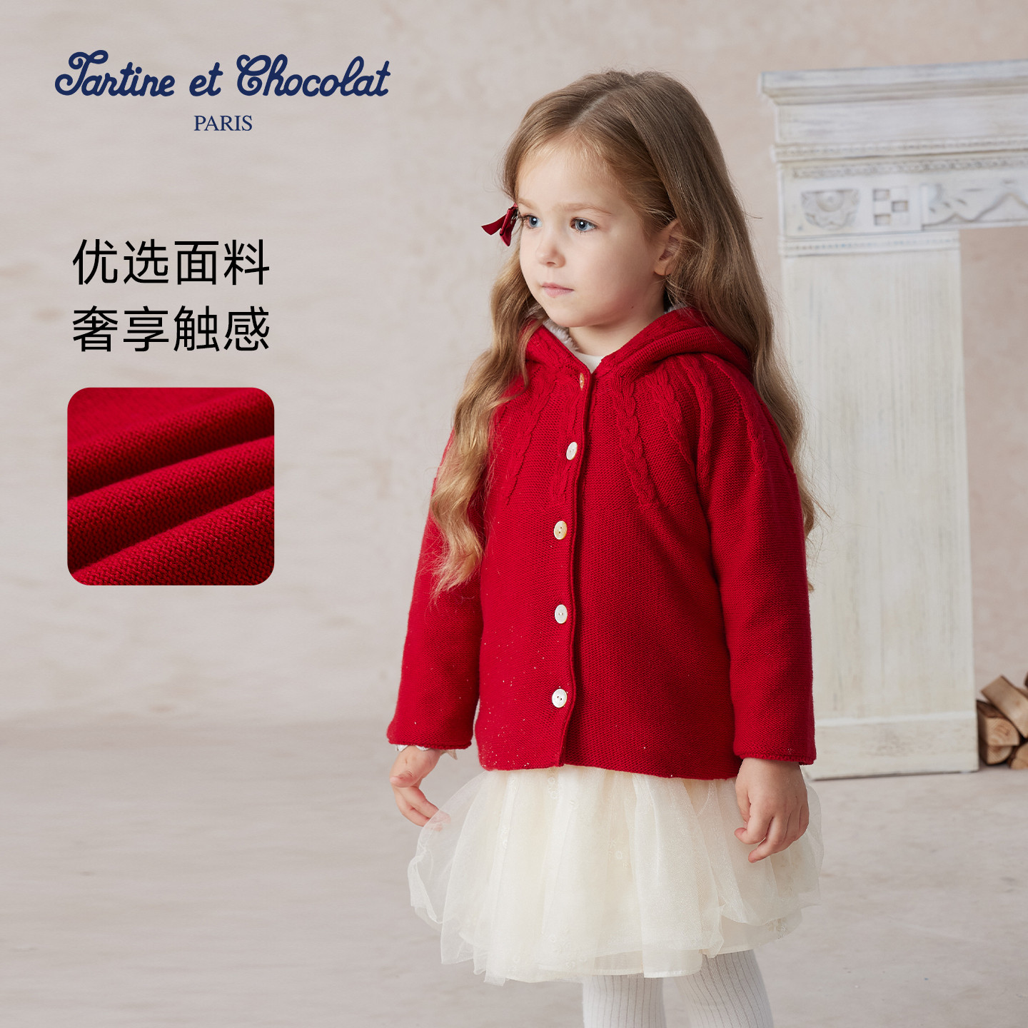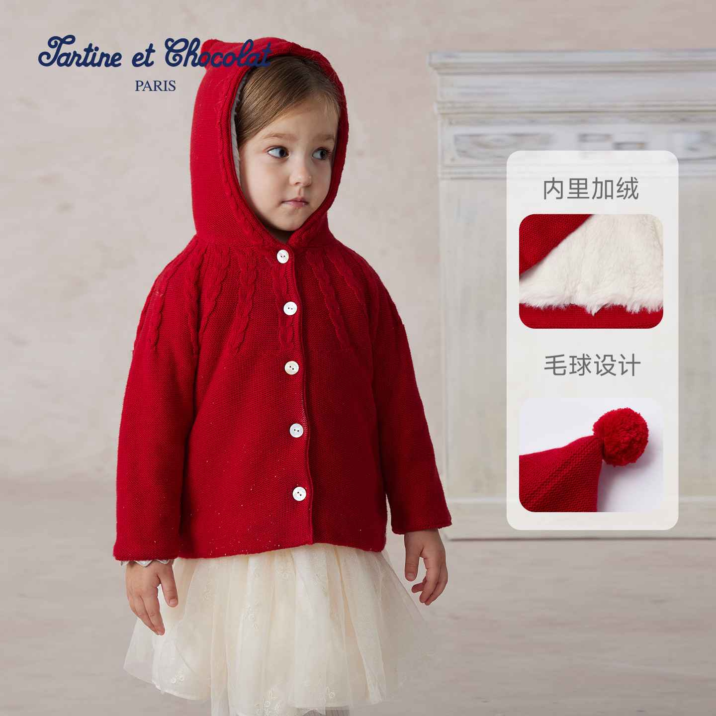 tartineetchocolat法国巧克力童装 女童连帽针织外套 25秋冬新款