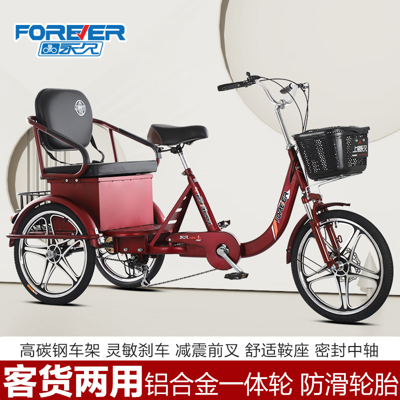 永久老年三轮车老人轻便轻型小型家用车成人车脚蹬脚踏人力三轮车