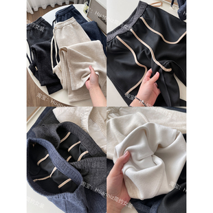 秋冬仿羊绒糯米休闲裤 女 宽松显瘦松紧腰软糯毛呢小弯刀阔腿长裤