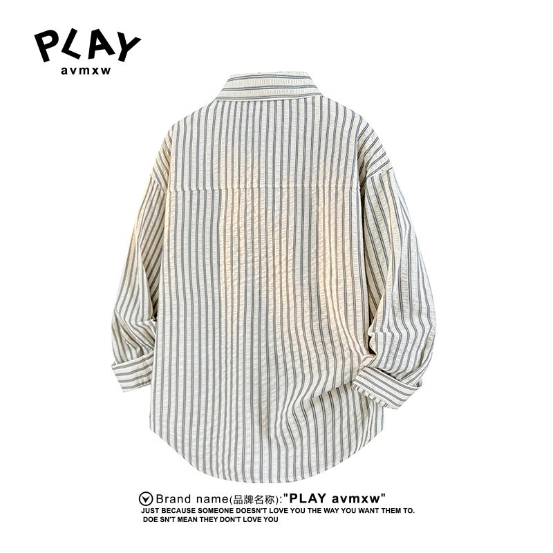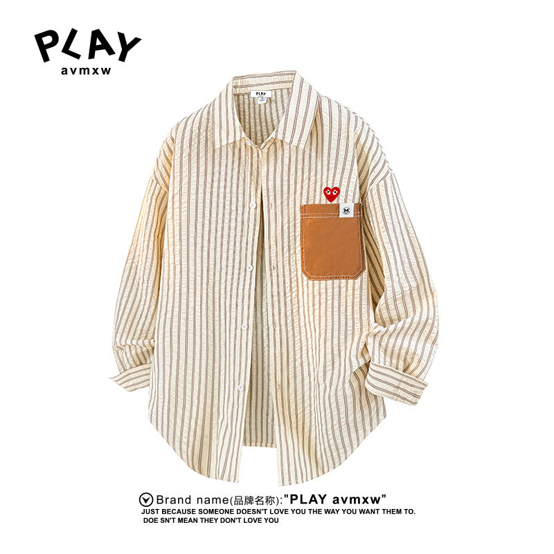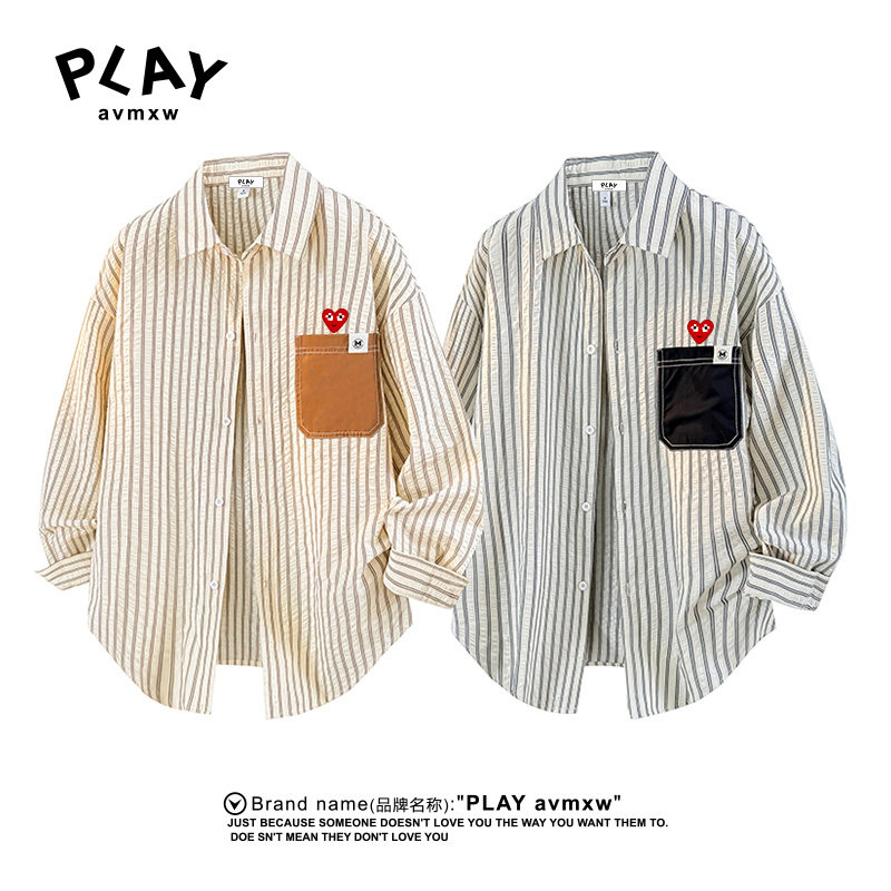 衬衫 官方长袖 秋冬季 新款 休闲撞色口袋条纹衬衣 PLAY 情侣款 AVMXW