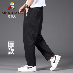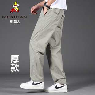 子男士 长裤 春秋季 加绒中年人爸爸宽松工装 薄冬季 稻草人纯棉休闲裤