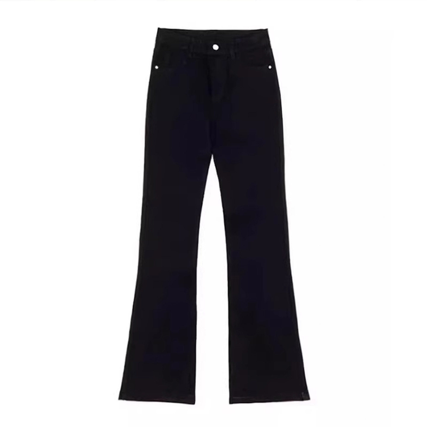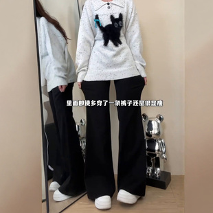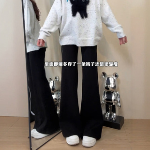 胖mm宽松显瘦垂感弹力喇叭裤 黑色不贴腿微喇牛仔裤 大码 新款 女秋季