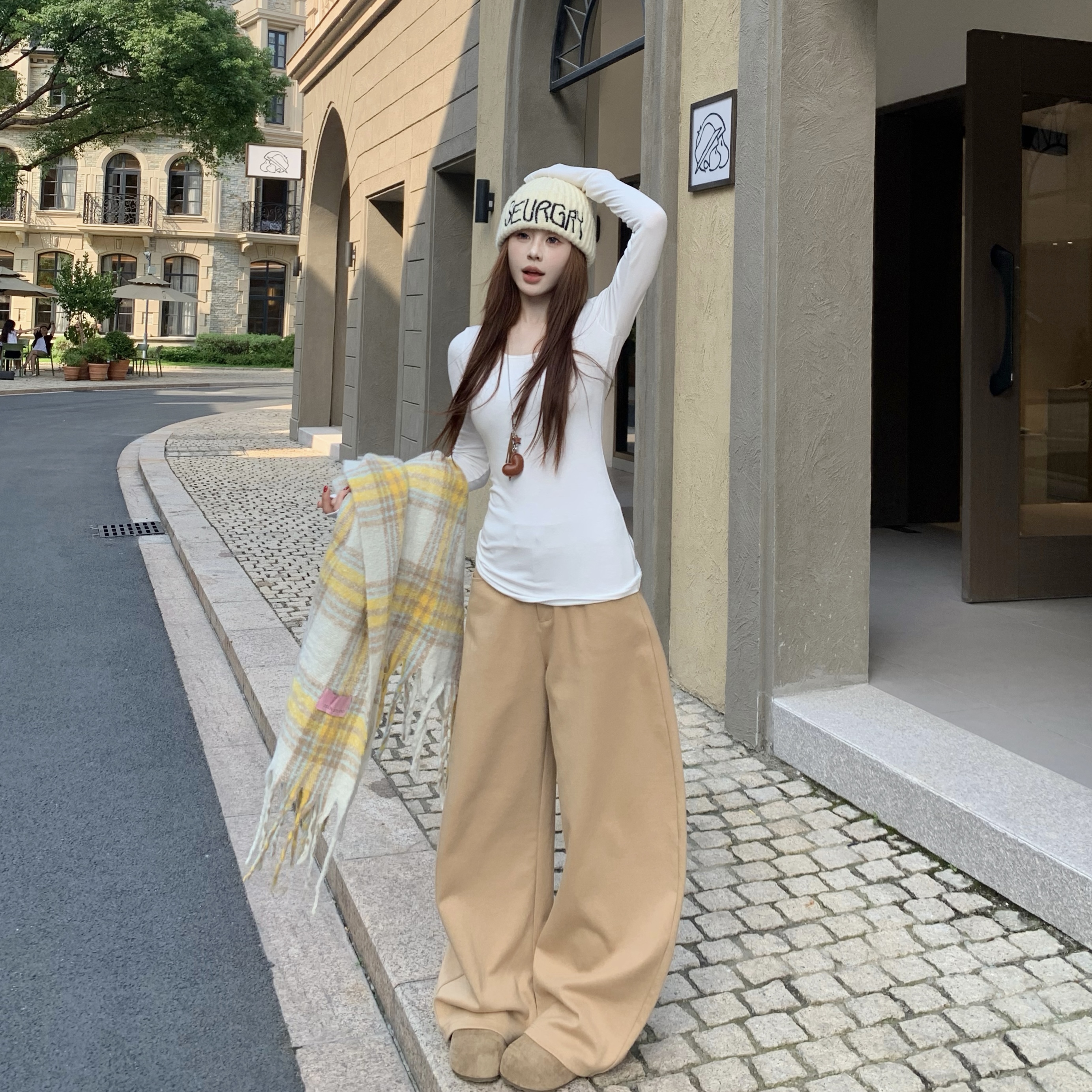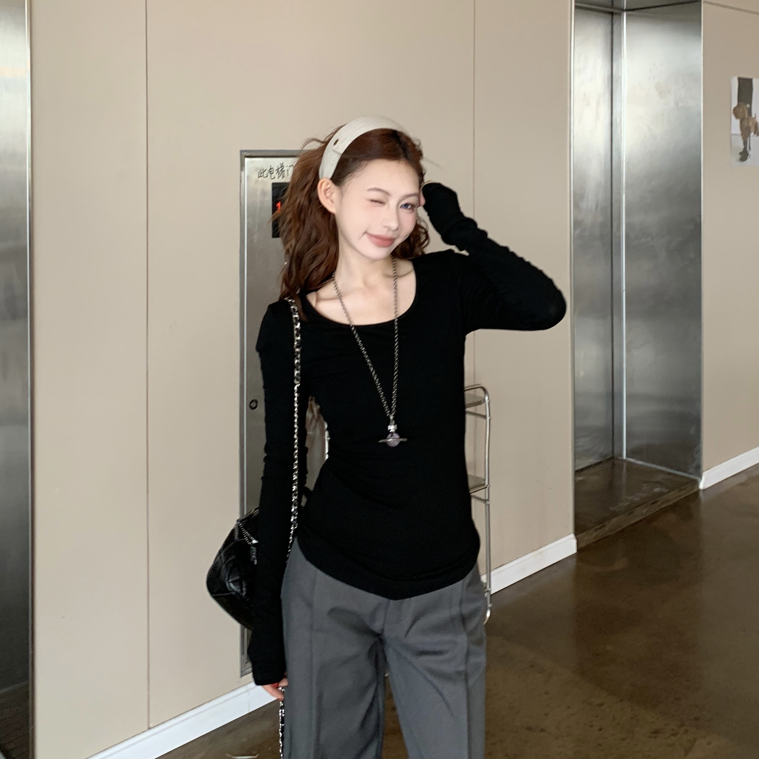 u领上衣 长袖 3MER哦哦三妹白色纯欲大领口T恤女秋冬内搭修身 打底衫