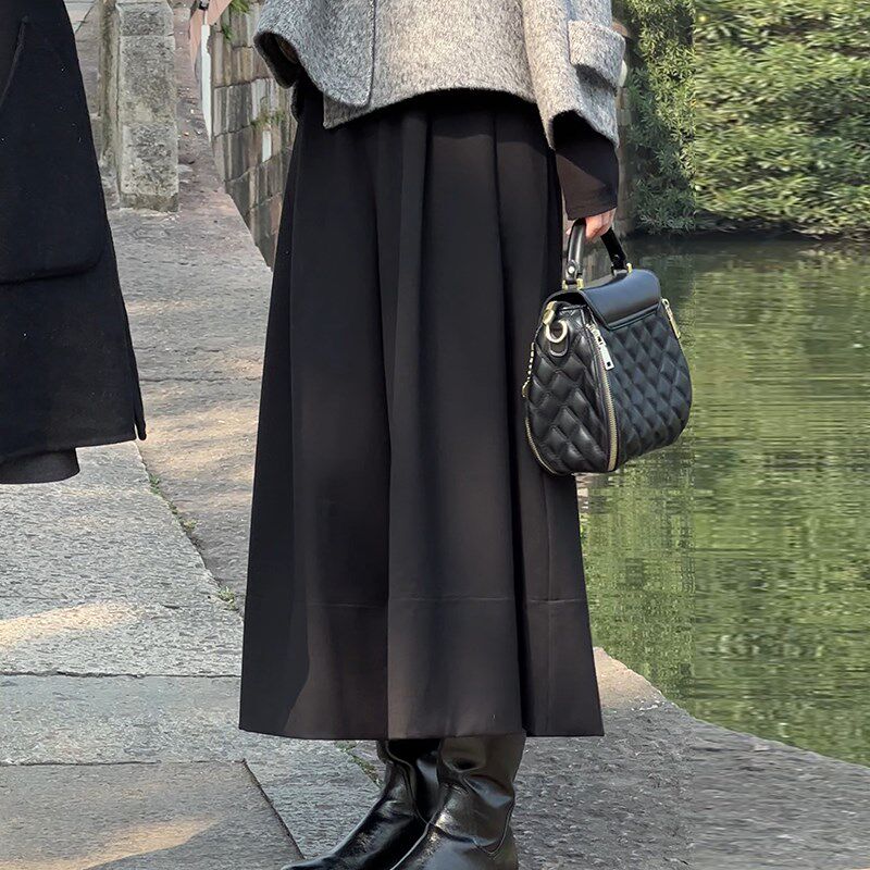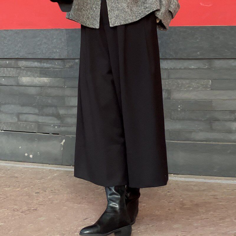 显瘦百搭休闲 女日常通勤宽松高腰羊毛阔腿裤 2024秋冬新款 黑色裙裤