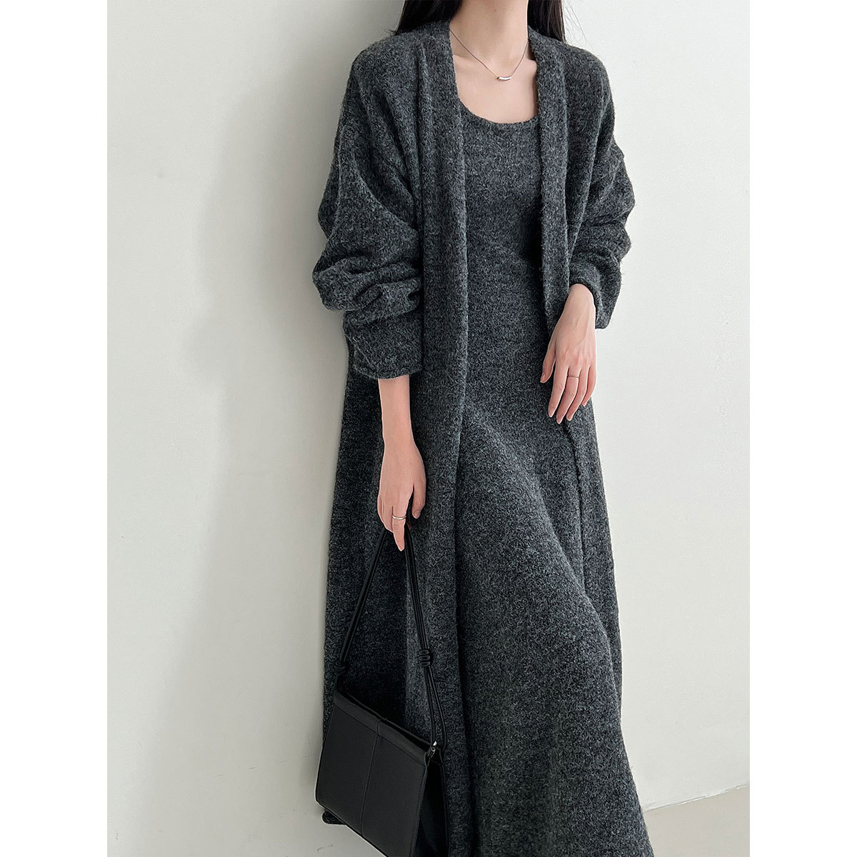 气质针织连衣裙 优雅毛衣开衫 外套套装 新款 长裙两件套 女秋季 法式