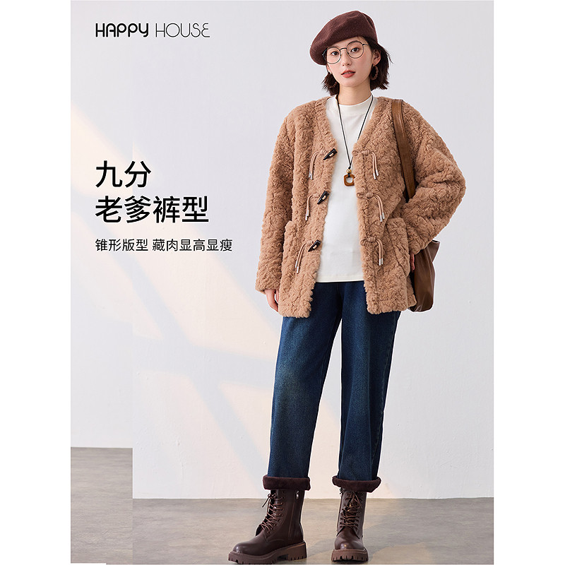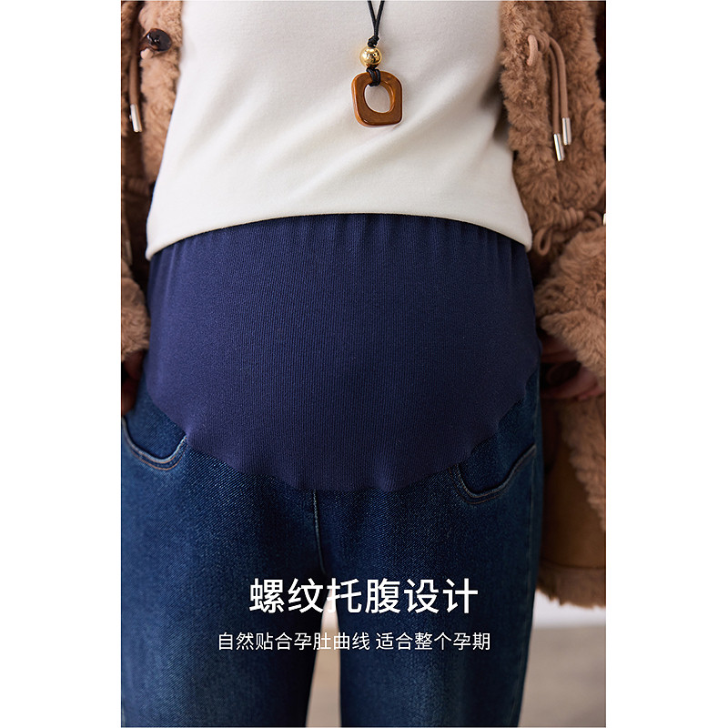 小个子孕妇裤 快乐屋孕妇牛仔裤 显瘦老爹裤 加绒加厚2025新款 冬 冬装