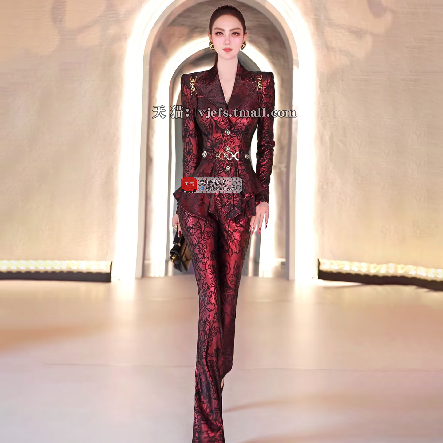 气质减龄收腰裙摆外套微喇叭裤 2025新款 两件套 套装 VJE职业OL西装