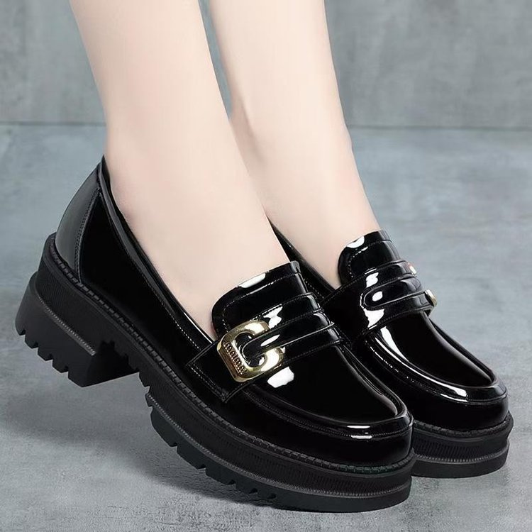 清仓2025新款 圆头洋气皮鞋 厚底单鞋 时尚 女百搭软底漆皮乐福鞋 断码