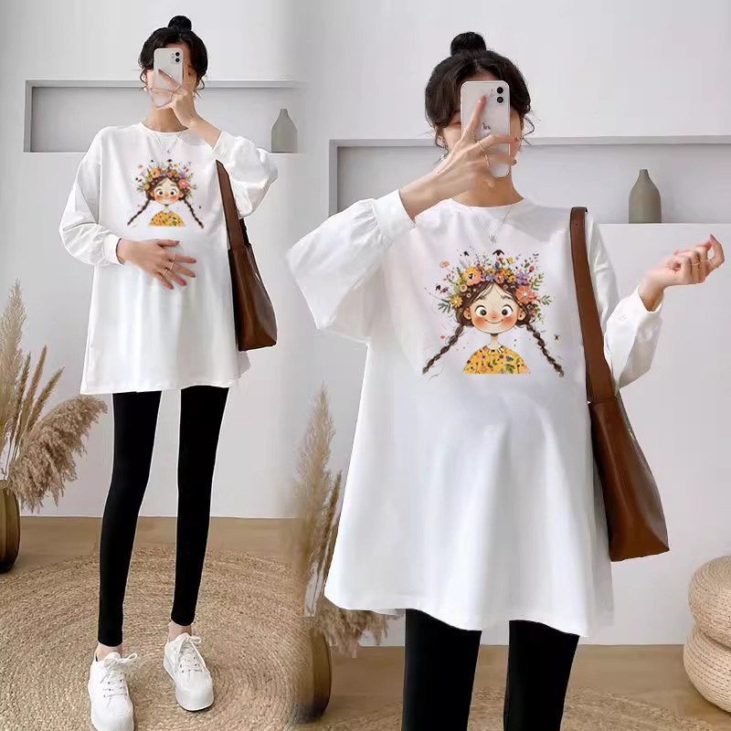 套装 孕妇装 长袖 圆领上衣百搭显瘦韩版 T恤孕妇 春秋季 宽松大码 新款