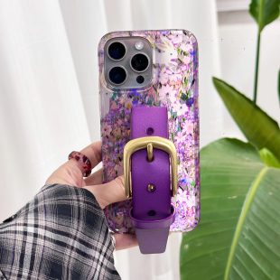 铜扣腕带全包手机保护套15 promax经典 14手机保护壳 迷幻兔兔花园植糅牛皮腕带手机壳适用苹果系列iphone