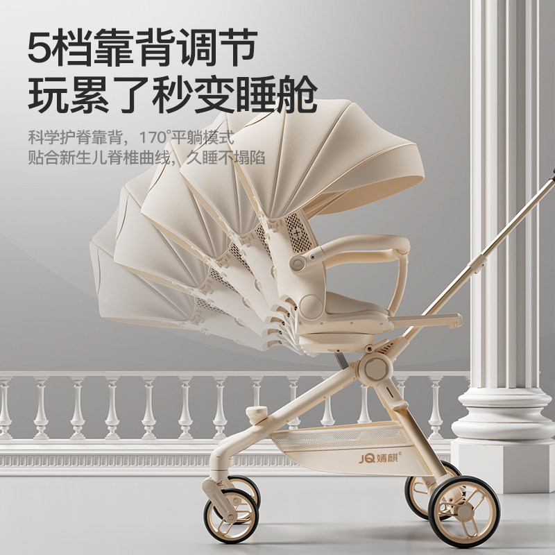 婧麒婴儿推车遛娃神器可坐可躺轻奢高景观折叠轻便一键收车手推车