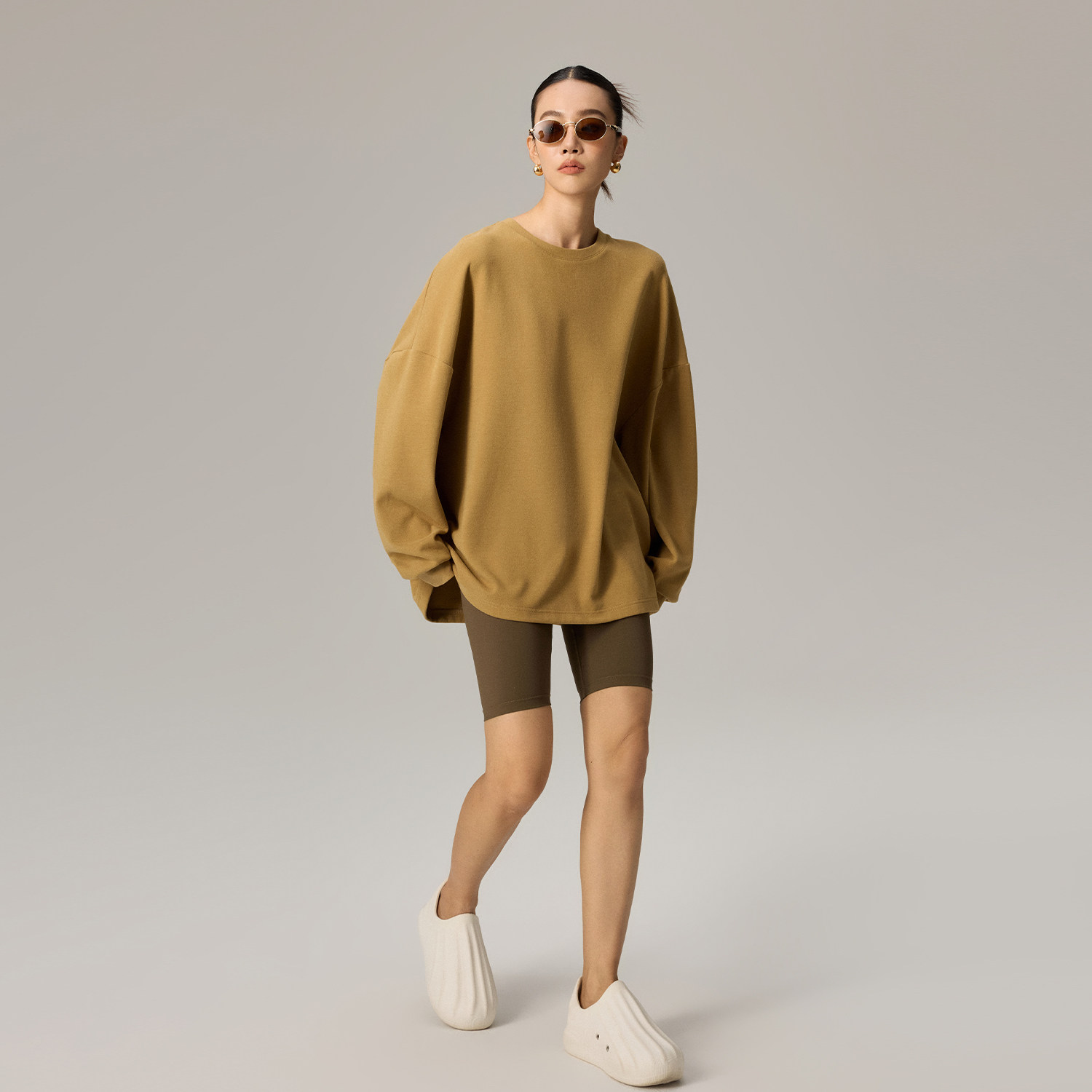 上衣 长袖 ZzZHANG|chill出街_慵懒风廓形落肩大版 T恤圆领休闲时尚