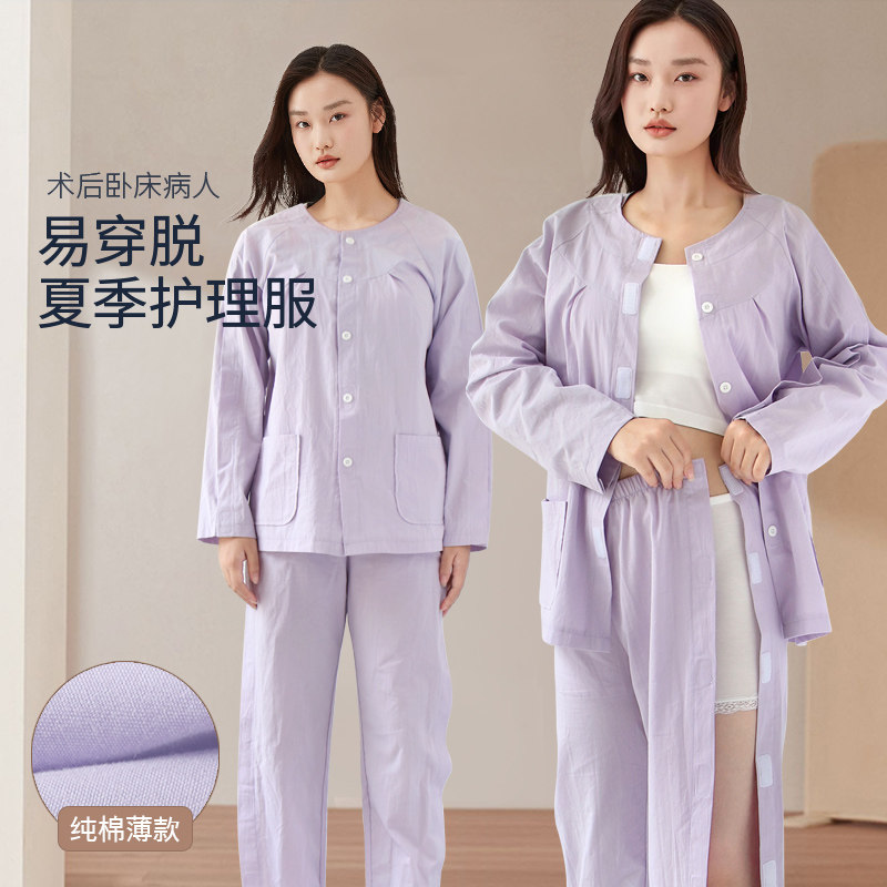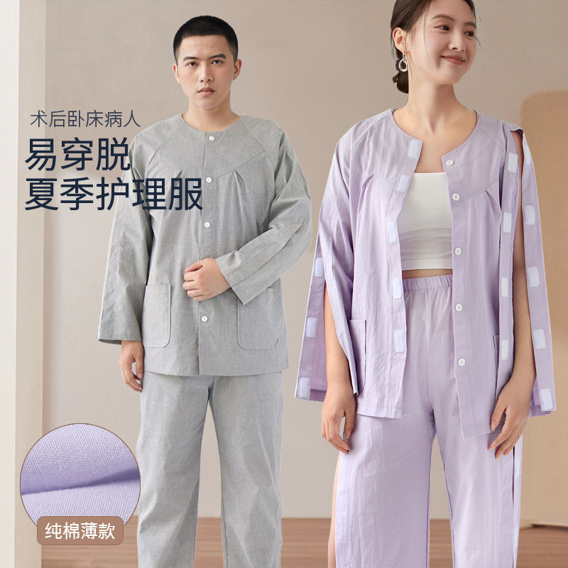 病号服易穿脱卧床病人偏瘫老人护理服术后骨折专用picc置管衣服夏