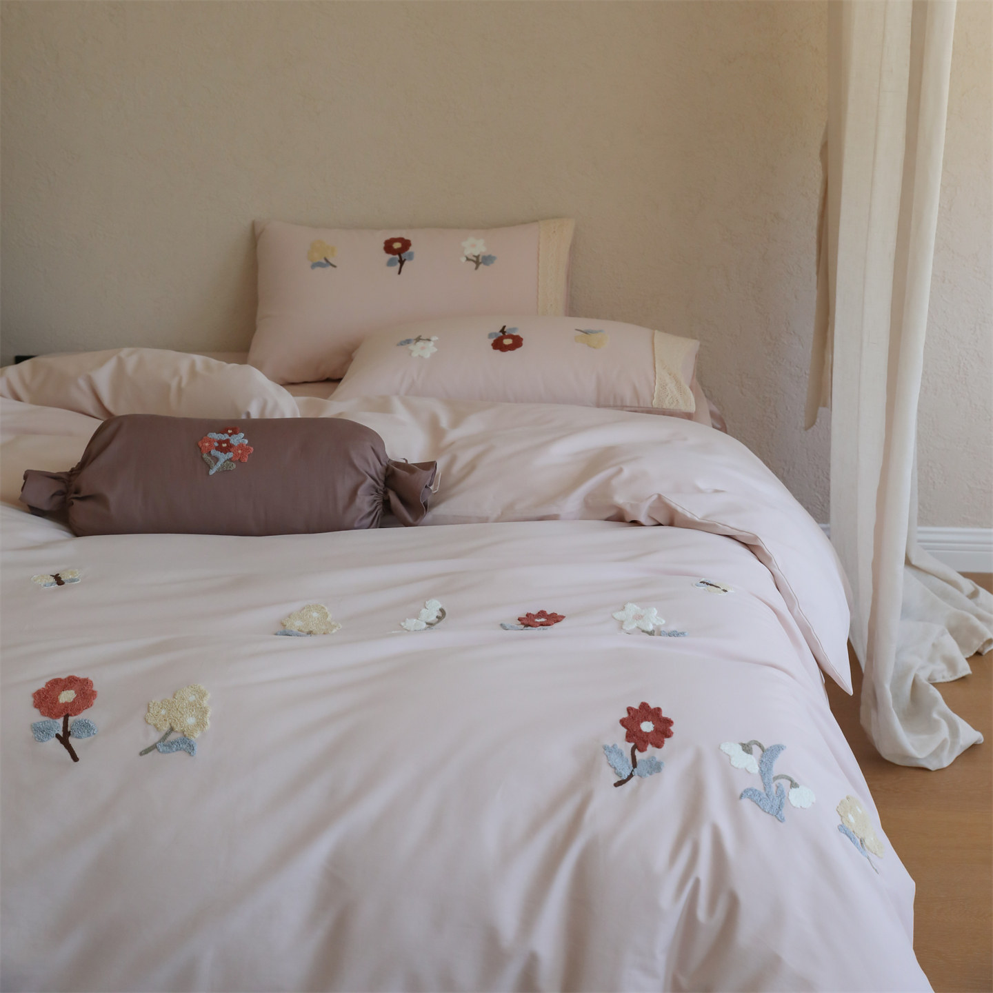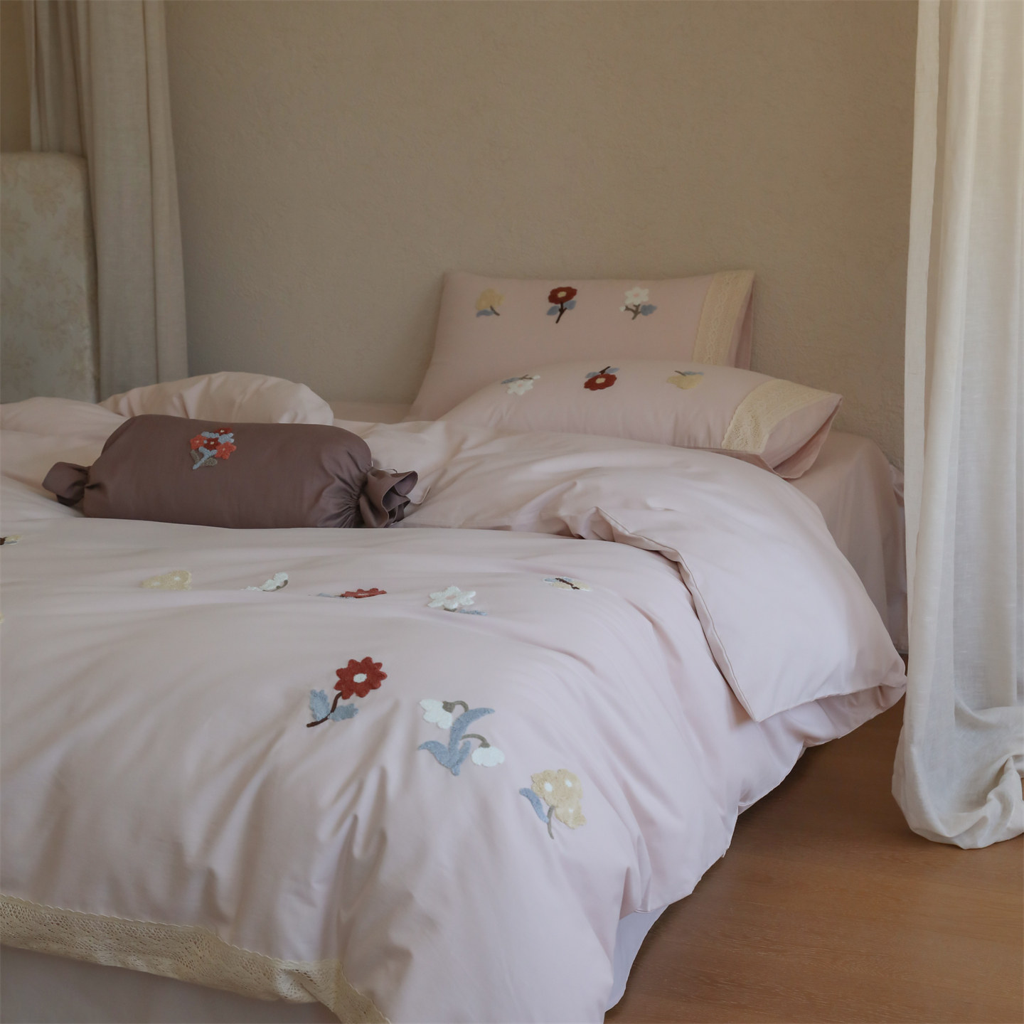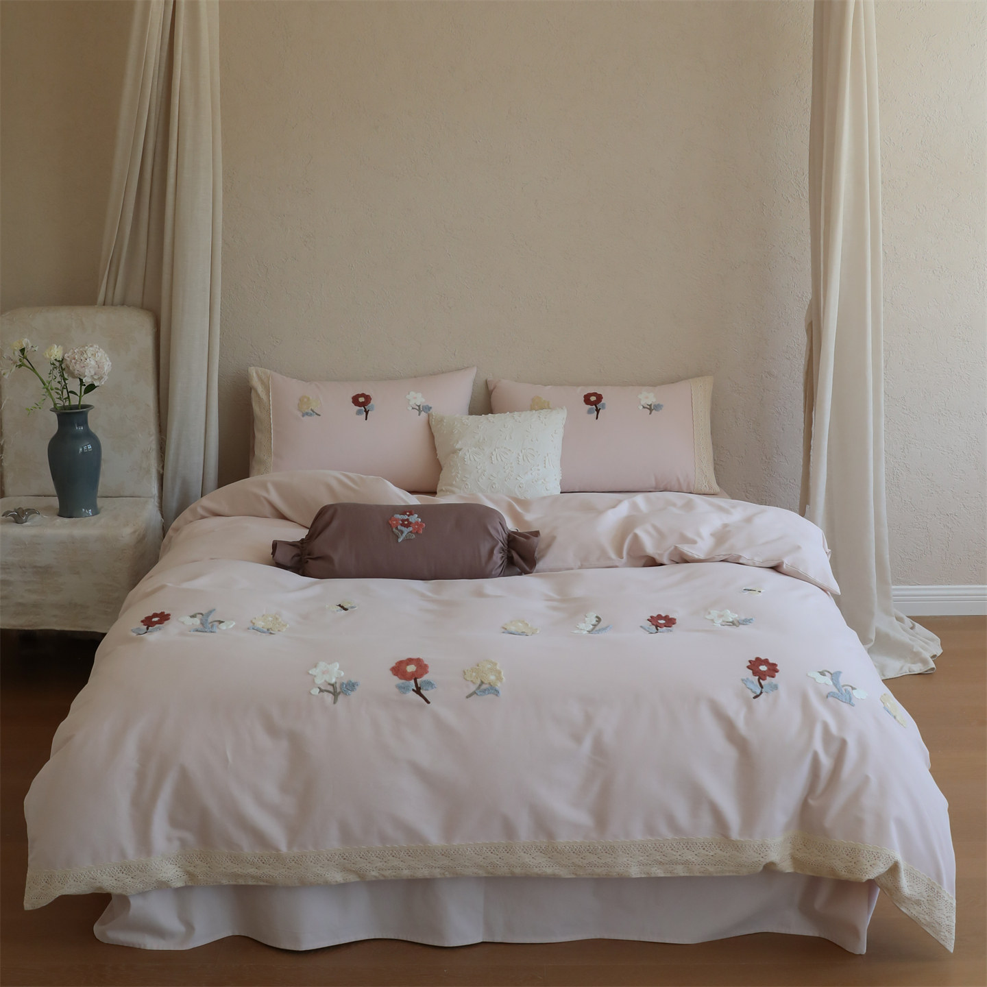 秋冬森系少女田园花卉全棉婴儿棉磨毛四件套 纯棉柔软蕾丝毛巾绣