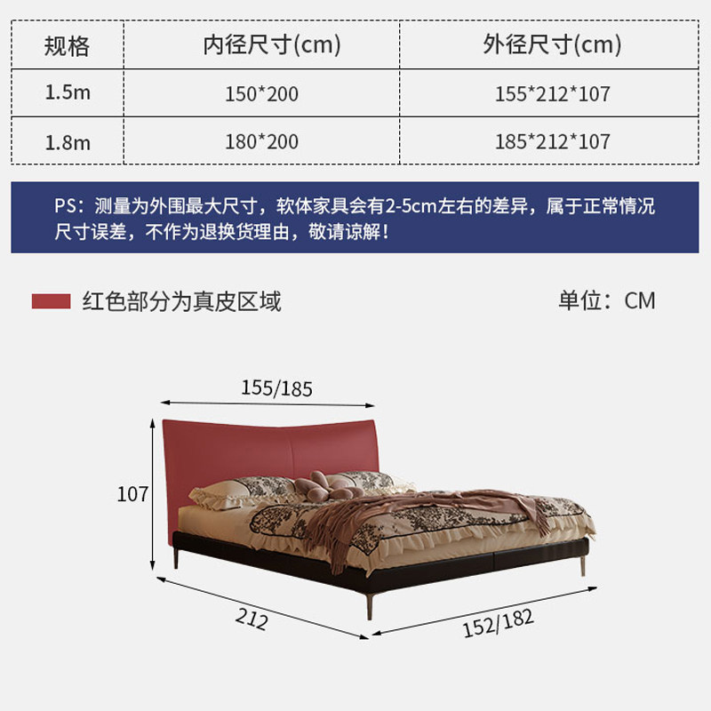 粤礼 极简香奈尔床箱一体真皮床主卧双人床 YL香奈儿001意式