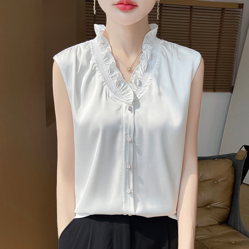 吊带背心女内搭白色美背醋酸仿真丝上衣缎面夏西装 仿桑蚕丝打底衫
