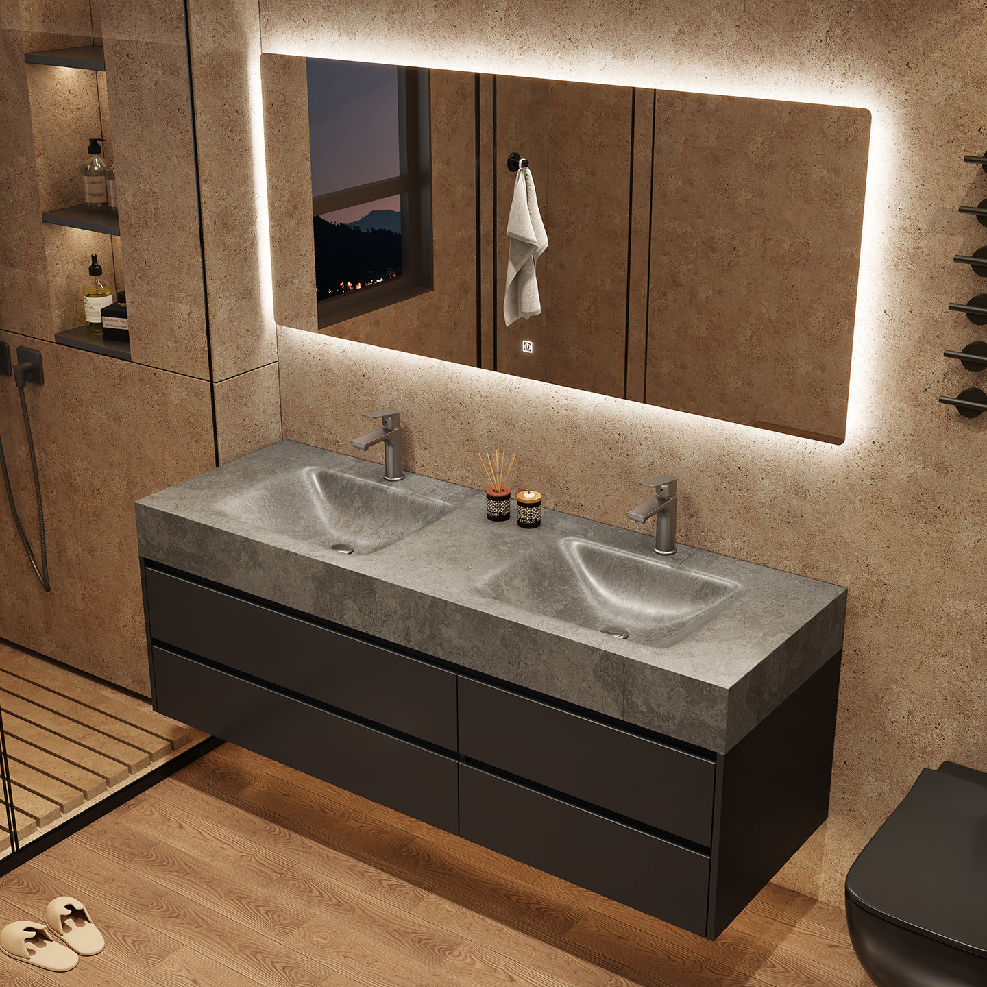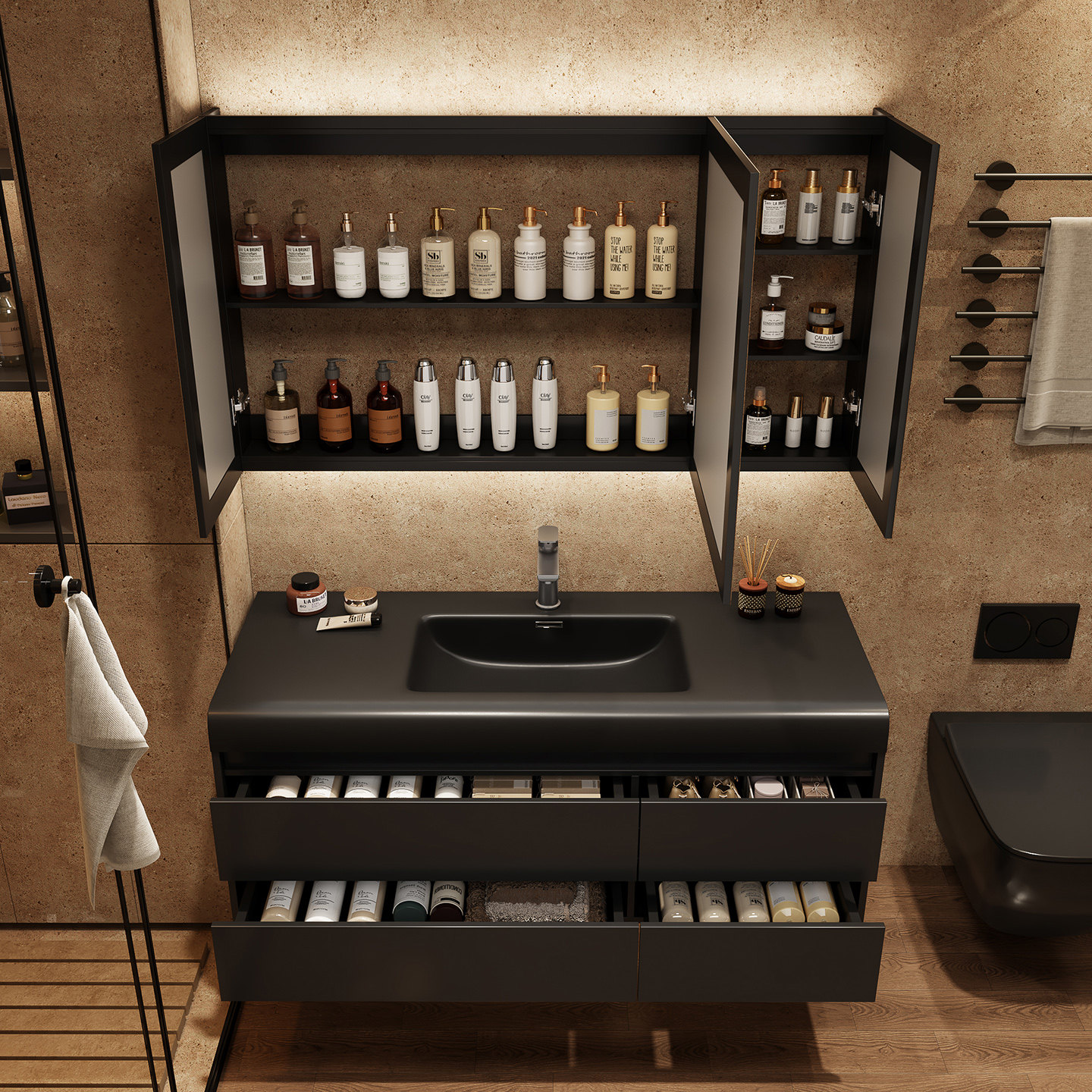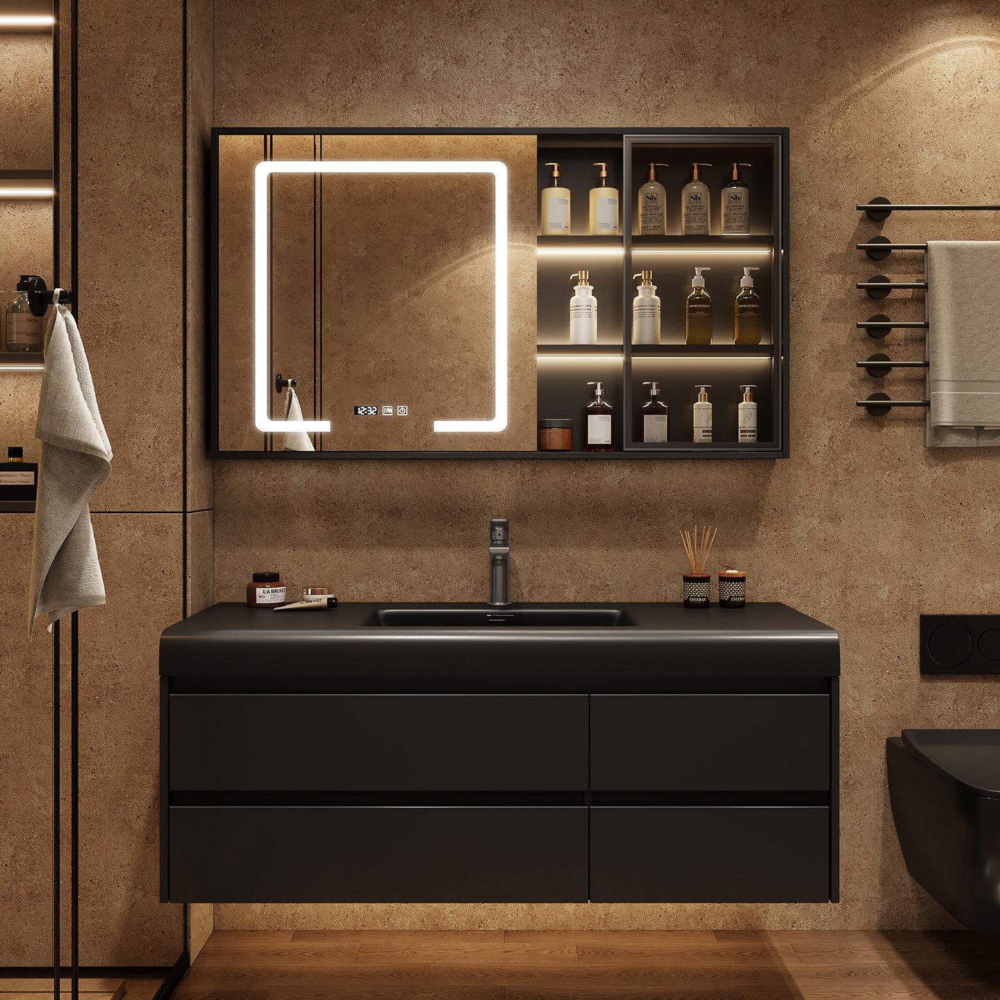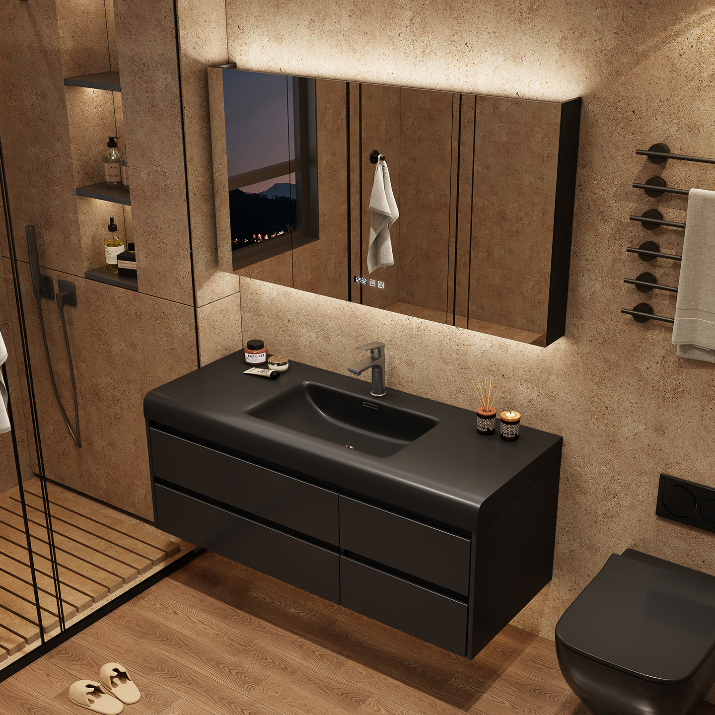 意式 极简黑洗手盆一体浴室柜组合卫生间洗漱台洗脸池卫浴智能面盆