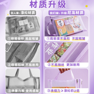 学科科目分类文件袋拉链式 书课本资料作业袋子 A4透明网纱双层大容量小学生用试卷收纳袋手提补习拎书袋分科装