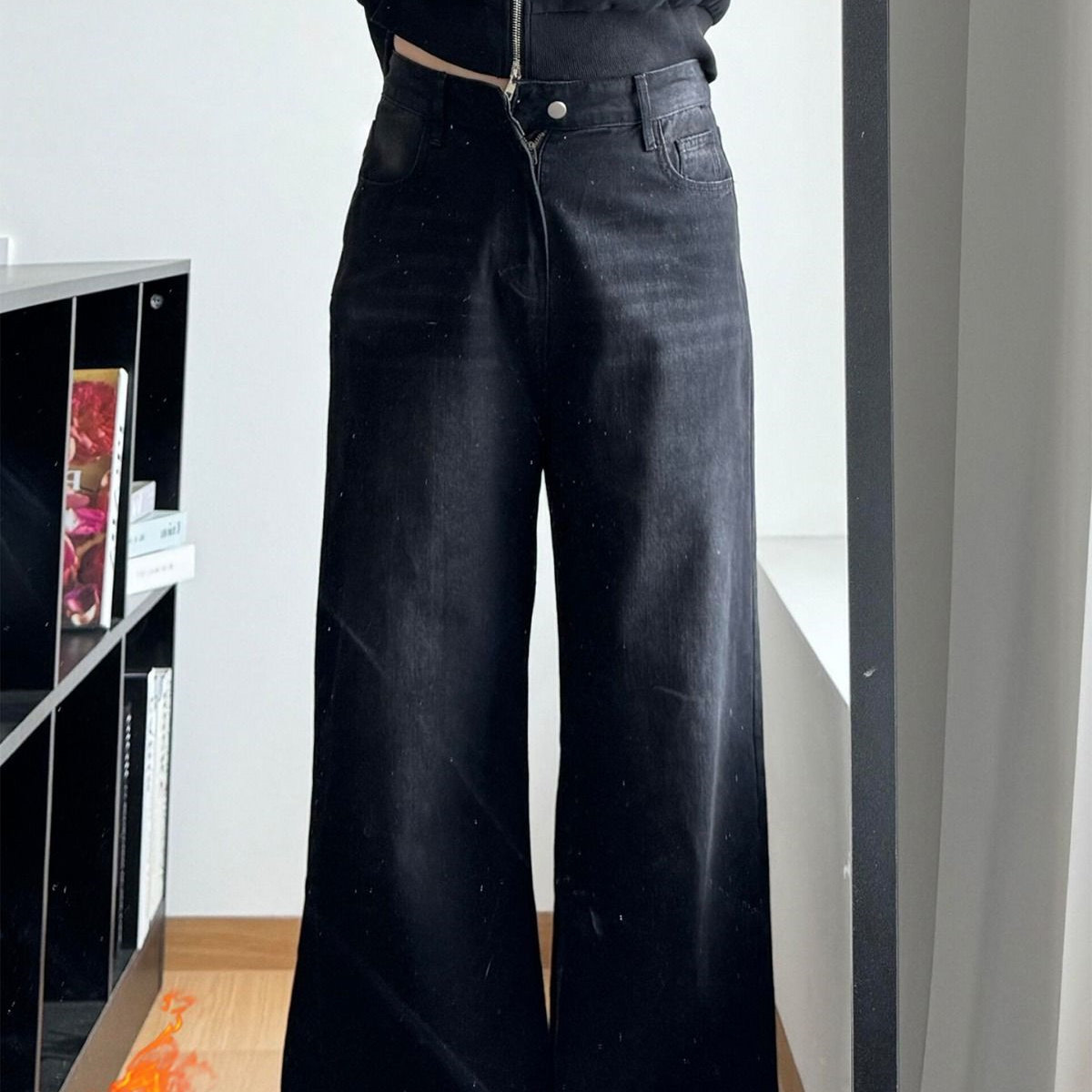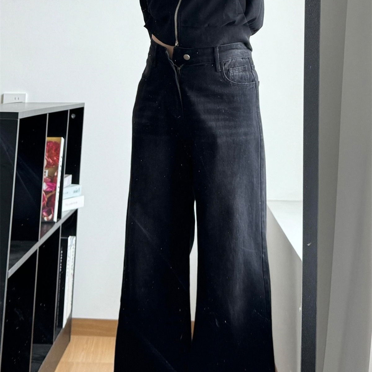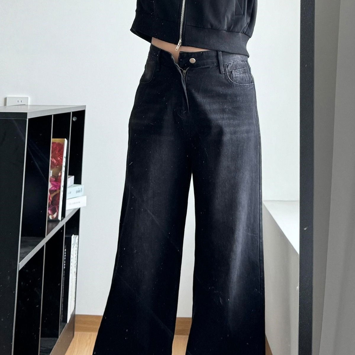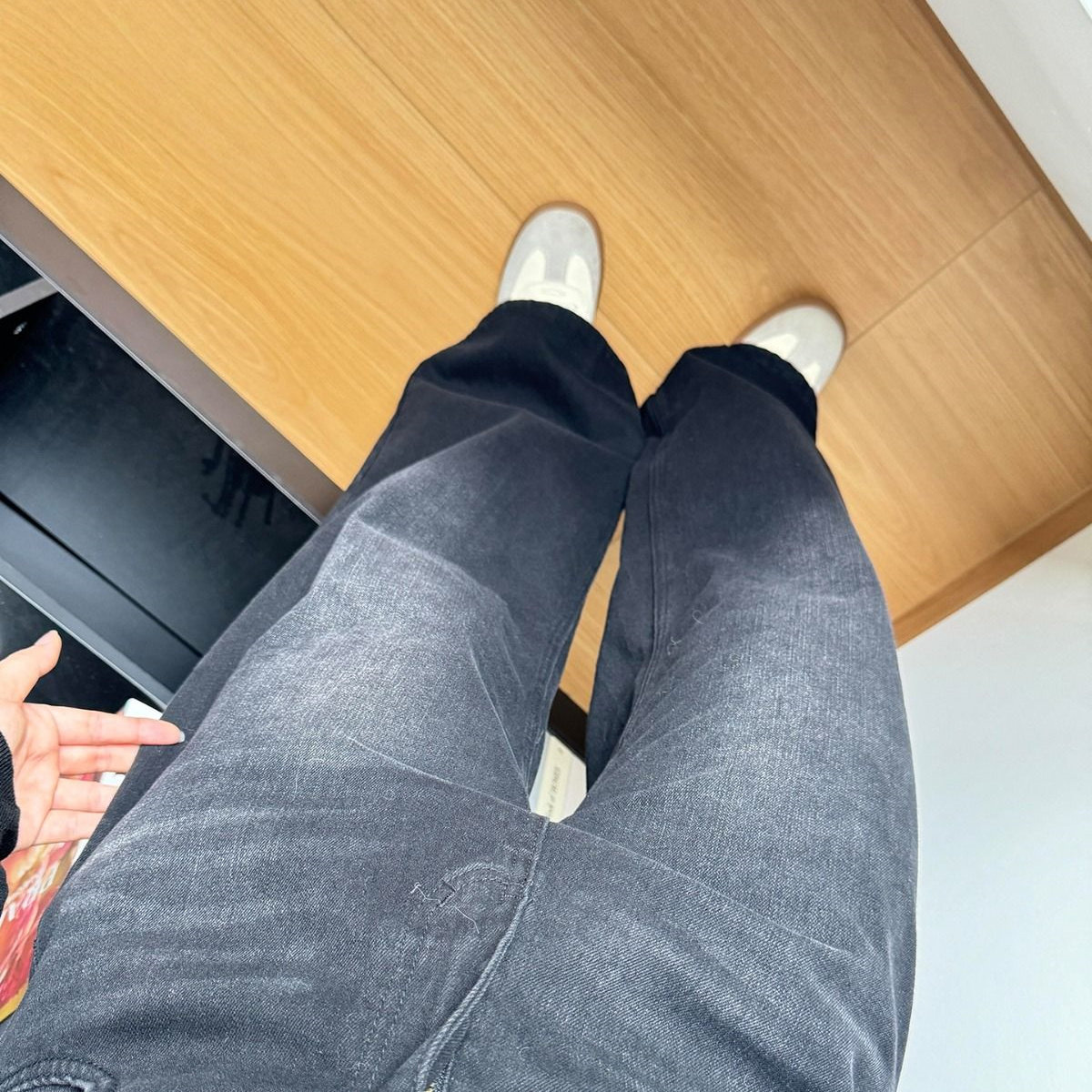 高腰显瘦小个子直筒拖地裤 黑灰色牛仔裤 新款 牛仔2026春季 潮 女韩版