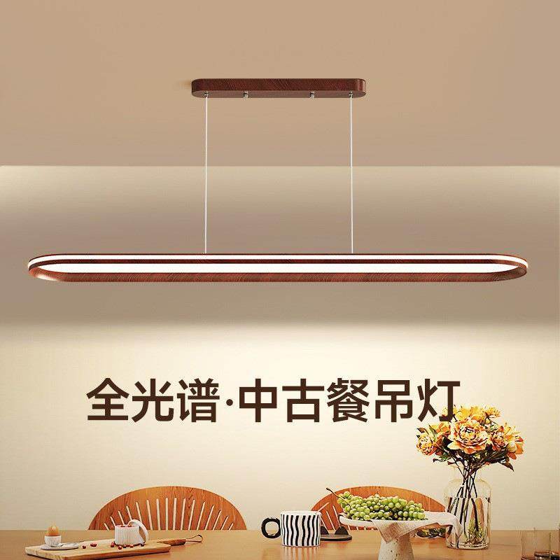 胡桃木色客法HZE式 复吊灯中古风餐厅长条灯宿厅卧古室极民简一字