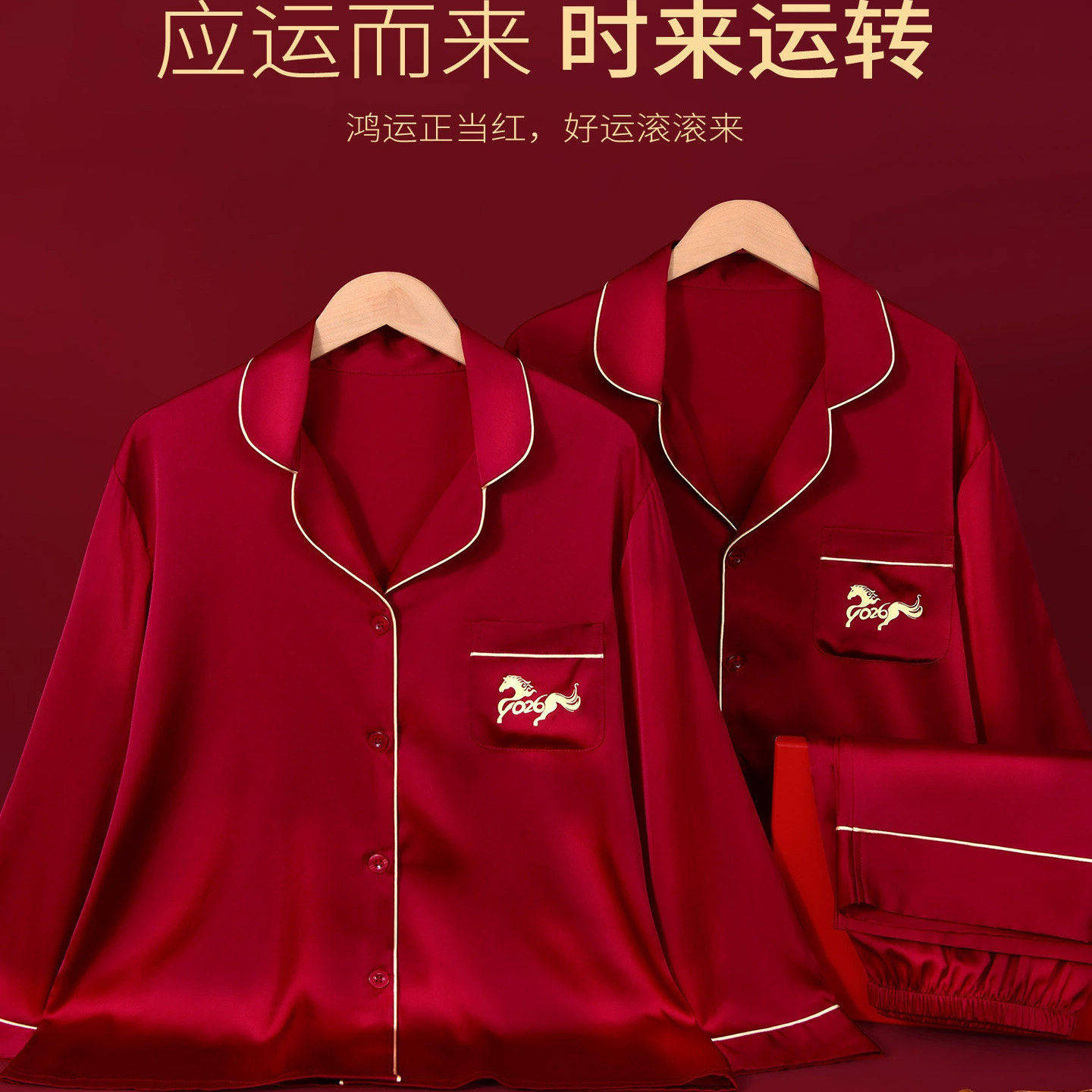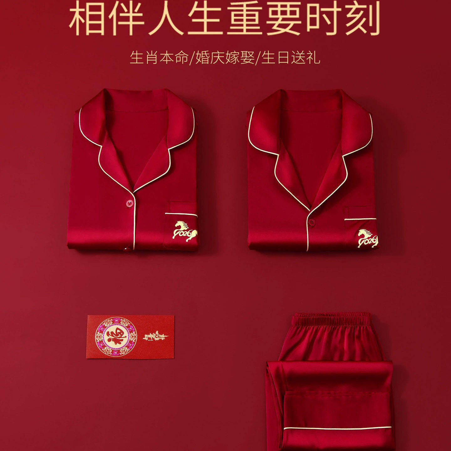 马克公主情侣睡衣女春秋红色圣诞纯棉新婚结婚男士 家居服秋冬 套装