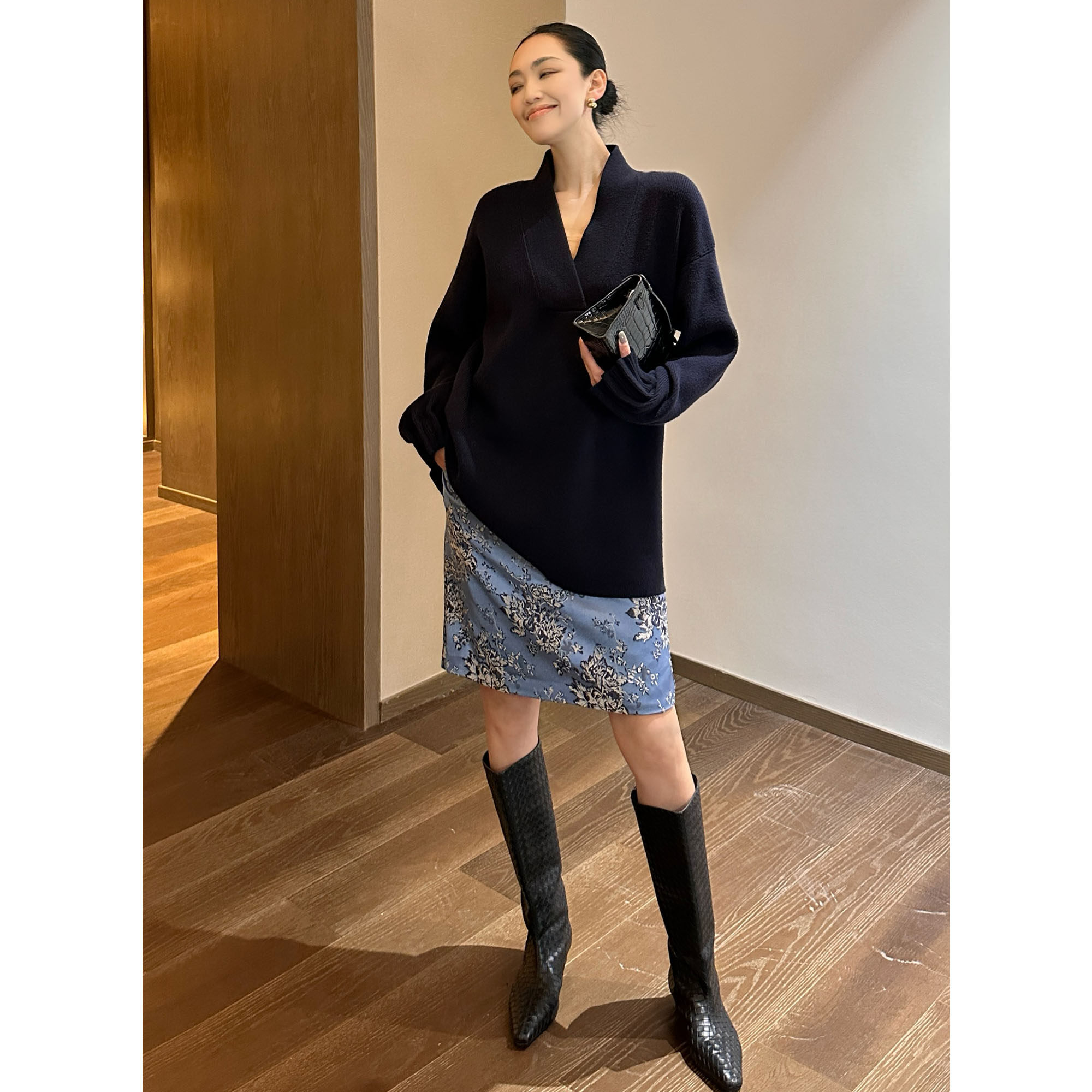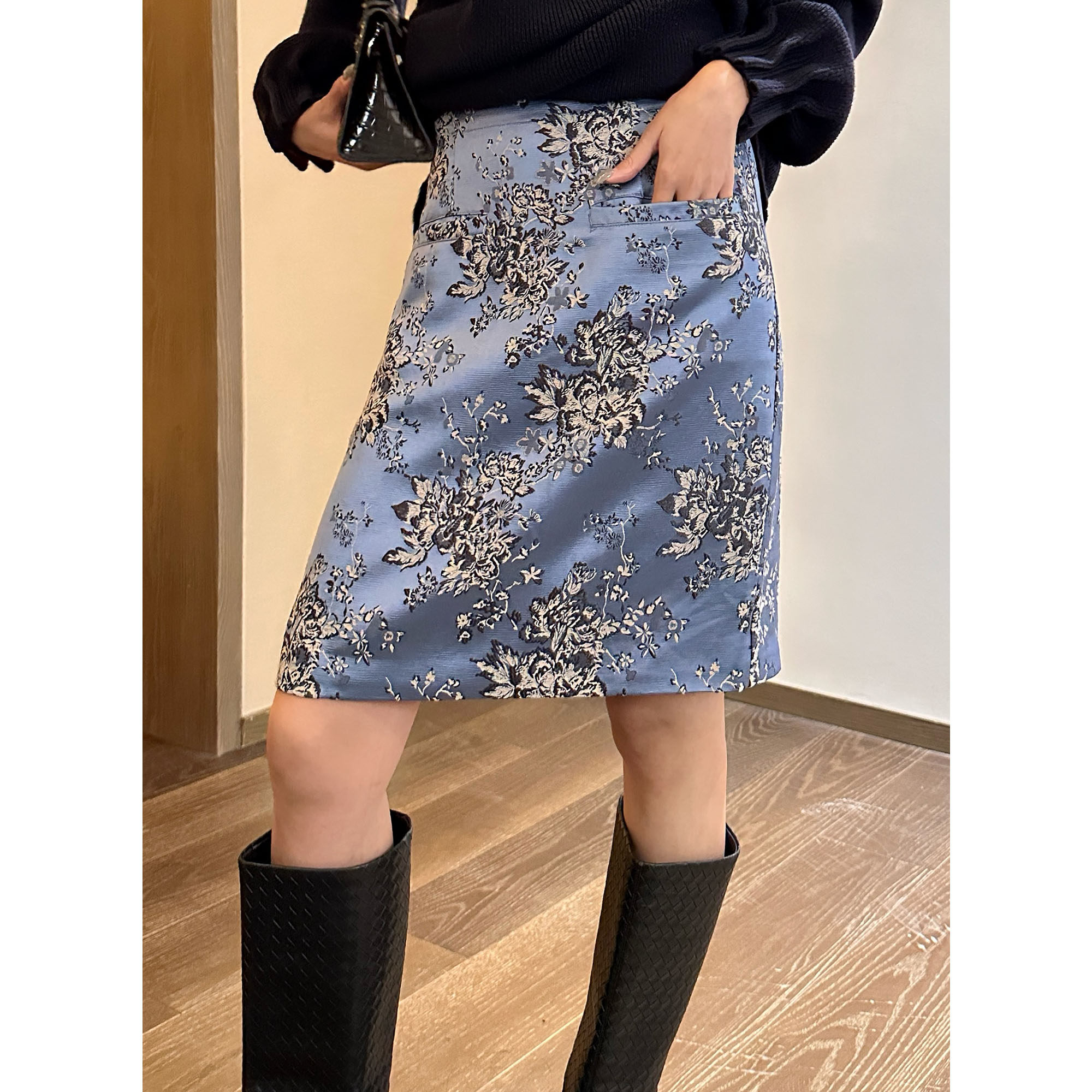返璞斑斓花园稠感四季 浅中式 半裙后开叉半身裙女 碧落花园裙 AME