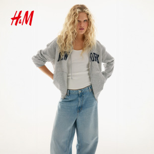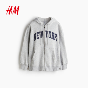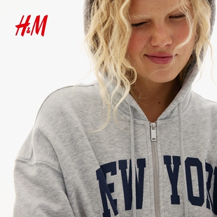 卫衣2026春季 大廓形连帽衫 新款 开衫 拉链外套1234775 美式 HM女装