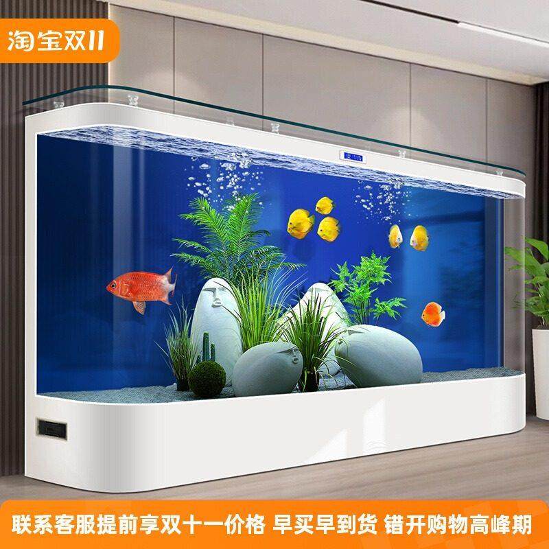 2025双圆形弧形大型玻璃靠墙落地一体式 客厅免换水 鱼缸高端落地式