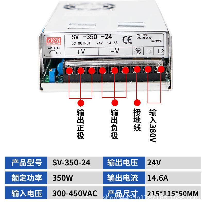 明纬380V转24V12V36V开关电源盒SV 24380V变48伏直流100W 350