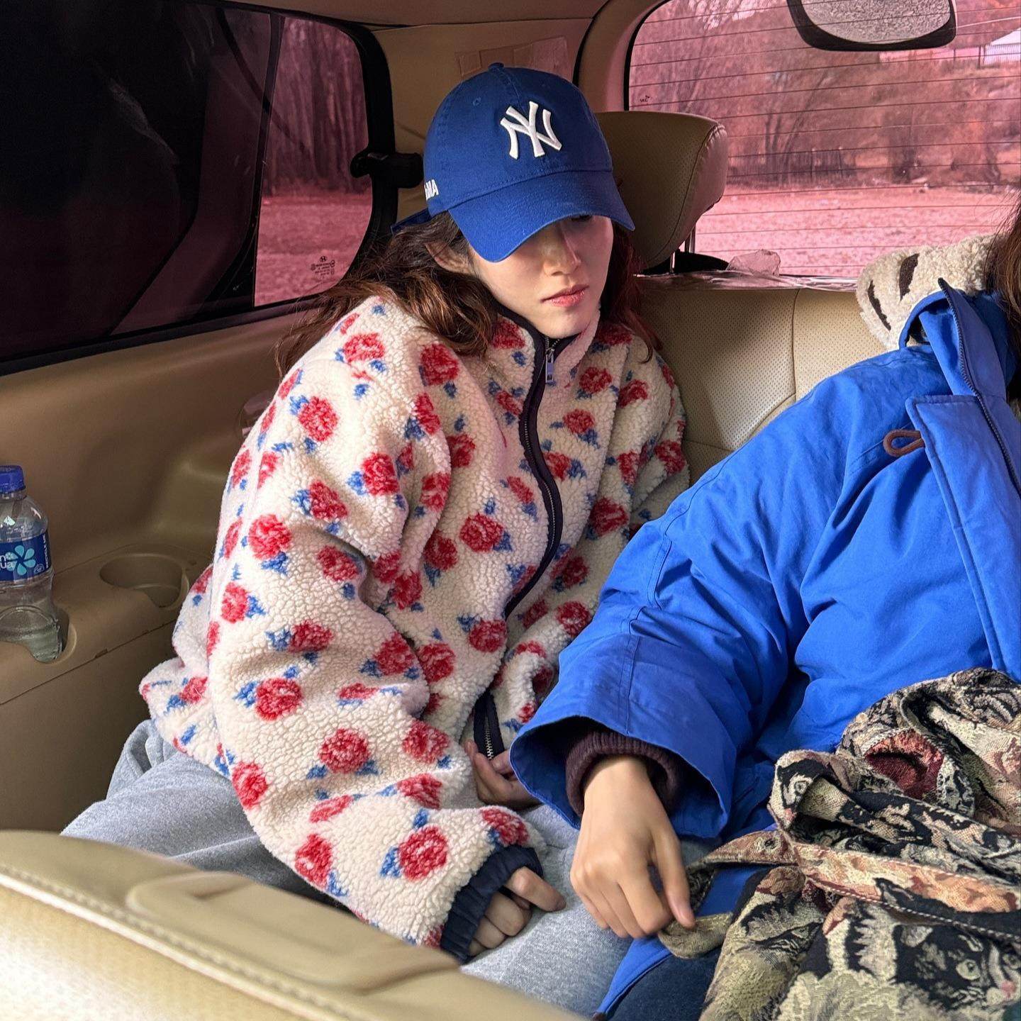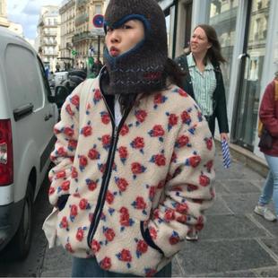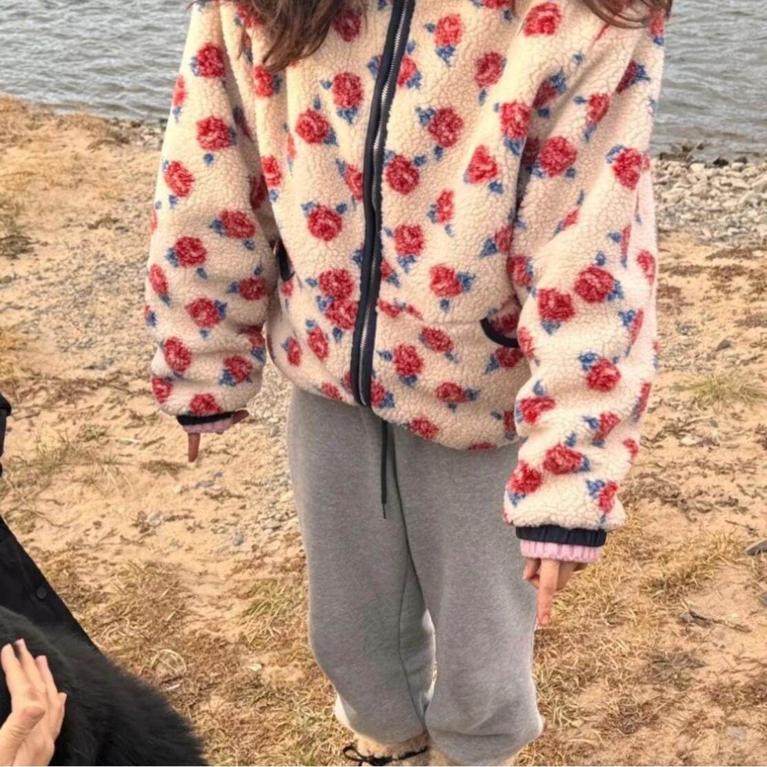 forest韩国复古玫瑰花毛外套加厚摇粒绒卫衣女 orange