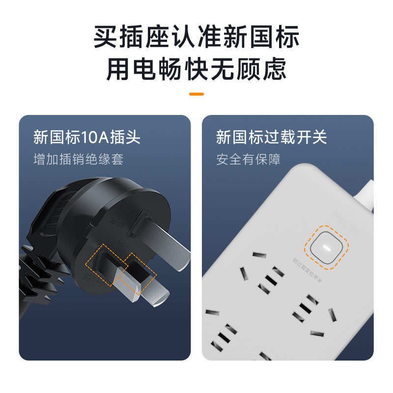 新国标插座插排电磁炉空调拖接线板插座转换器带长线家用无线插座