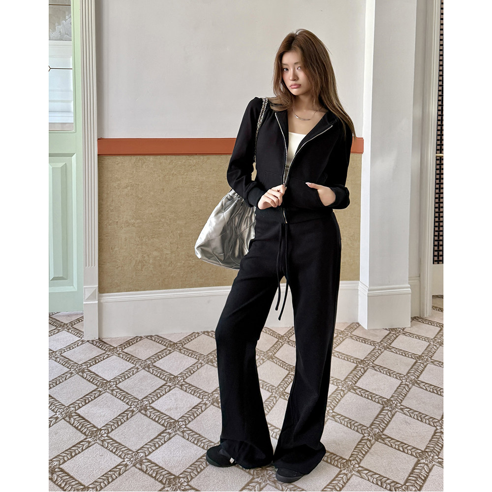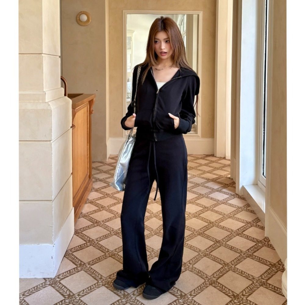两件套装 外套上衣微喇阔腿裤 女 休闲连帽卫衣卫裤 实拍2025秋冬新款