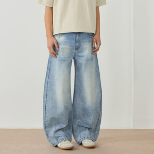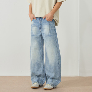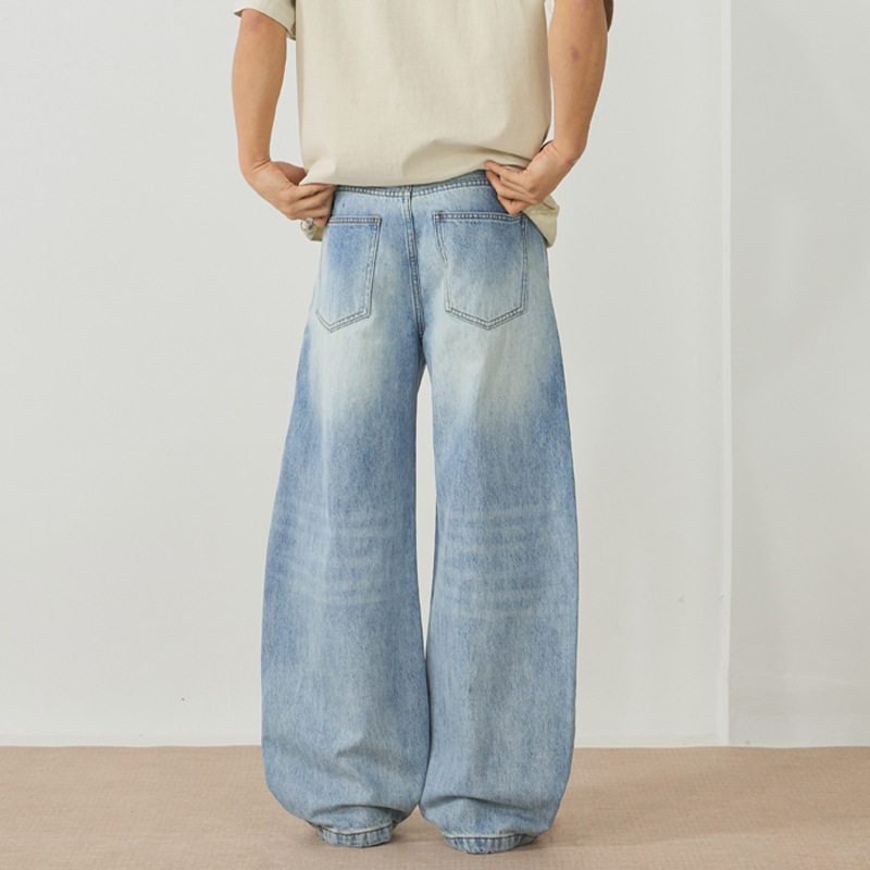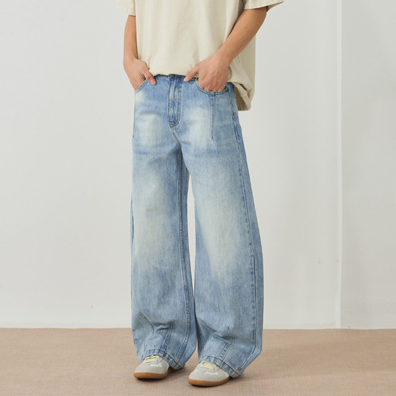 男阔腿宽松百搭直筒裤 水洗做旧重磅弯刀牛仔裤 男 春夏款 xxbro男装