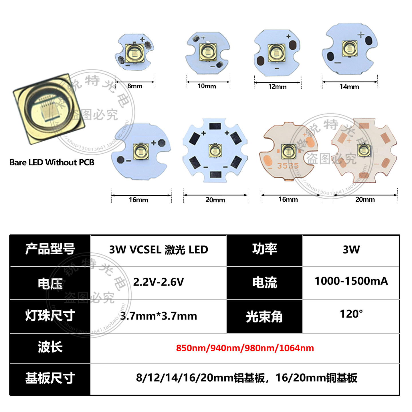 980 3535平面激光VCSEL 940 850 1064nm监控雷达红外 3W灯珠芯808