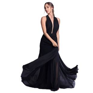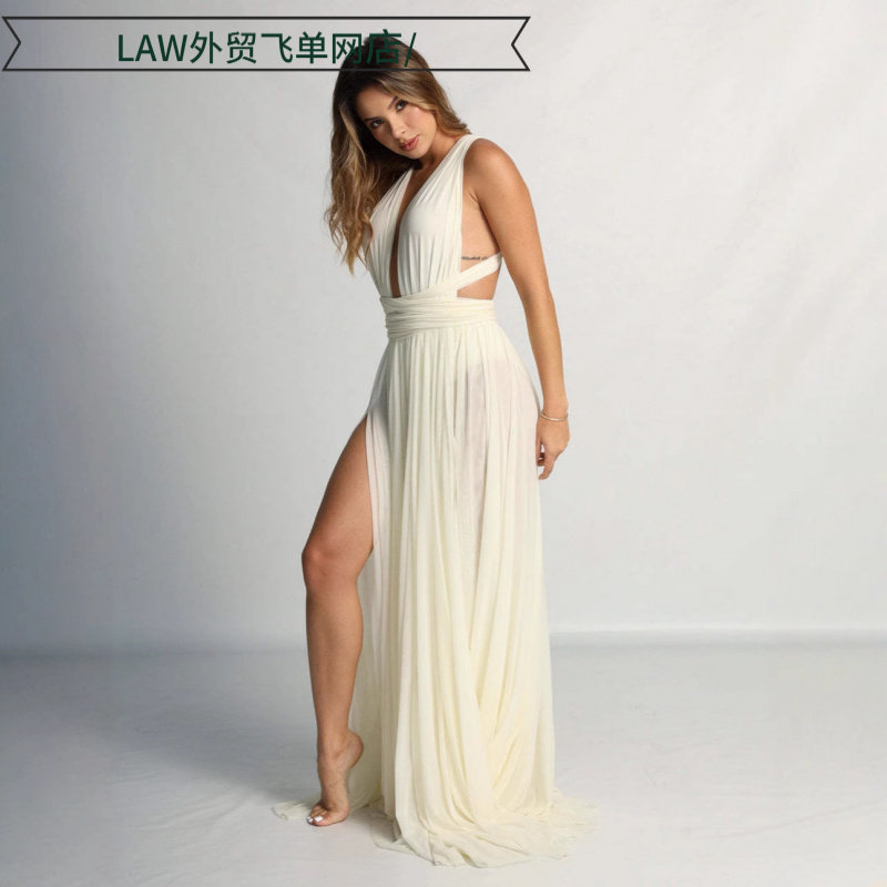 长袖 新款 内搭长裙包臀裙子 挂脖针织连衣裙女2025冬季 灰尘邓邓