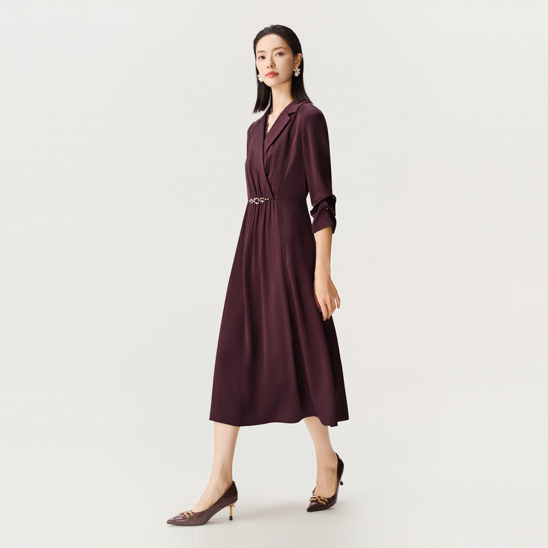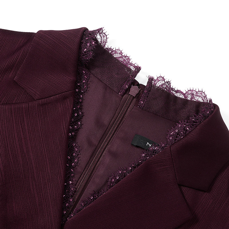 饰醋酸连衣裙26早春新款 NAERSI娜尔思商场同款 蕾丝领优雅异形钻装
